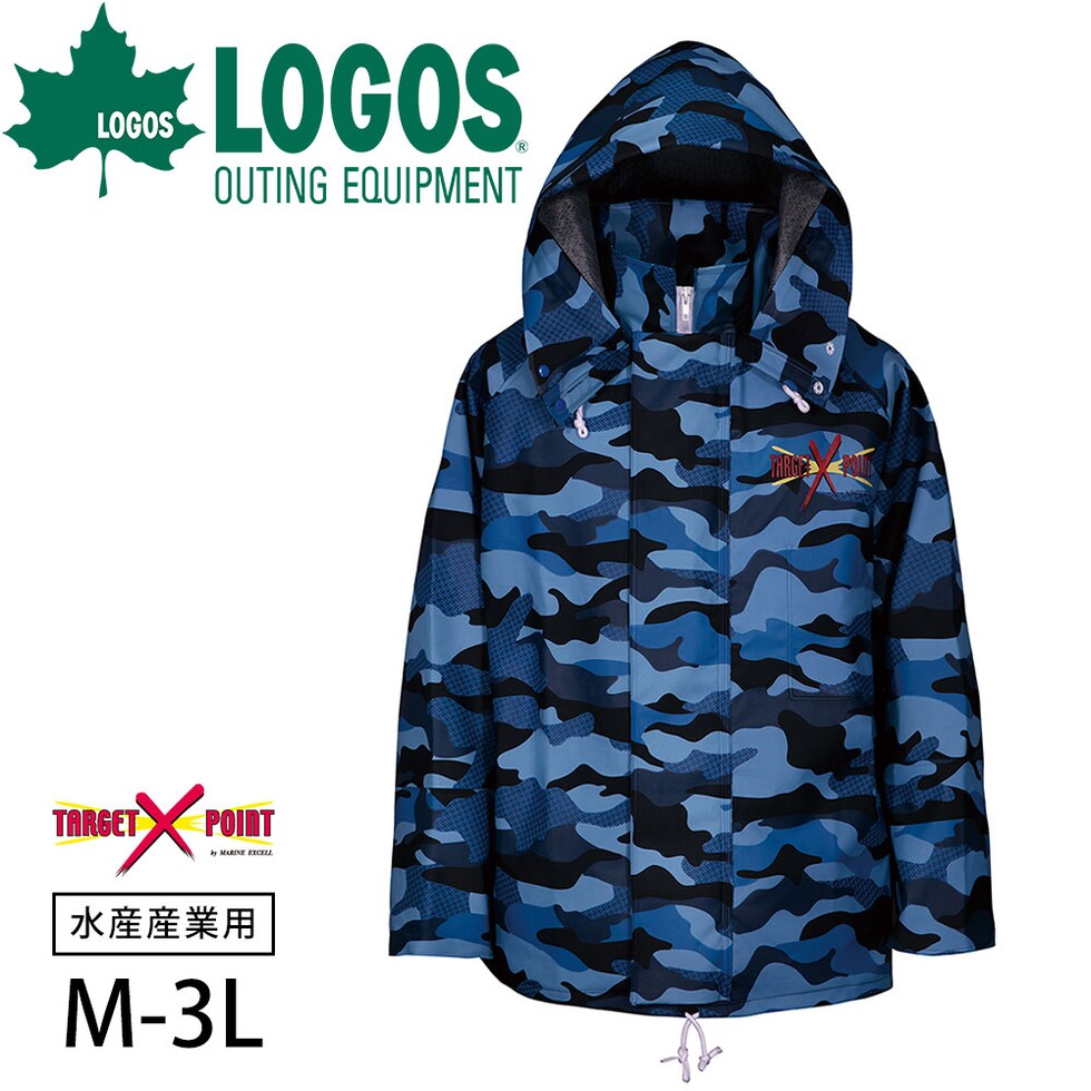 ロゴス LOGOS ターゲットポイント CAMOジャケット カッパ ジャンパー カモ ブルー 水産用合羽 水産合羽 作業着 作業服 水作業 水産業 水産用 防水 丈夫 釣り 作業用 耐寒 耐油 レインウェア レインウエア 漁師 魚屋 業務 水産業 水産 耐熱 並合羽 雨合羽 漁師カッパ 漁業