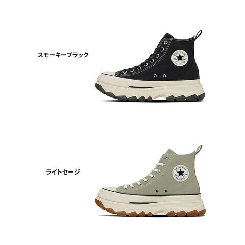 オールスターの定番スタイルに、トレッキングシューズを思わせるボリューム感あふれるアウトソールを融合させたデザインが目を引きます。