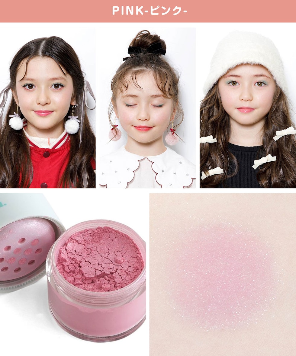【ピンク】マイカ、オクテニルコハク酸デンプンAl、酸化チタン、合成フルオロフロゴパイト、シリカ、トリ(カプリル酸/カプリン酸)グリセリル、マンガンバイオレット、フェノキシエタノール、赤201、酸化鉄、カオリン、酸化スズ、エチルヘキシルクリセリン