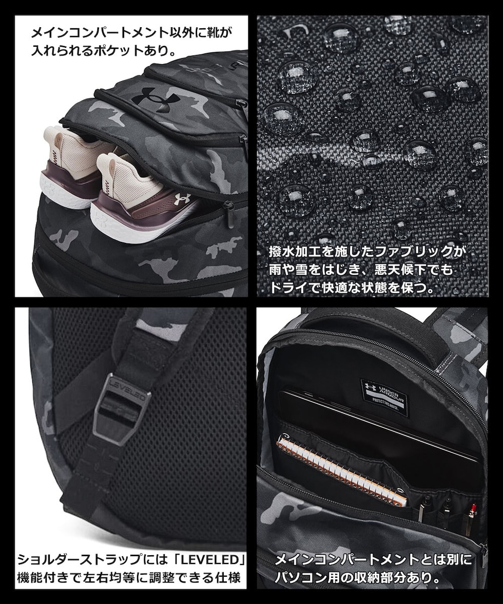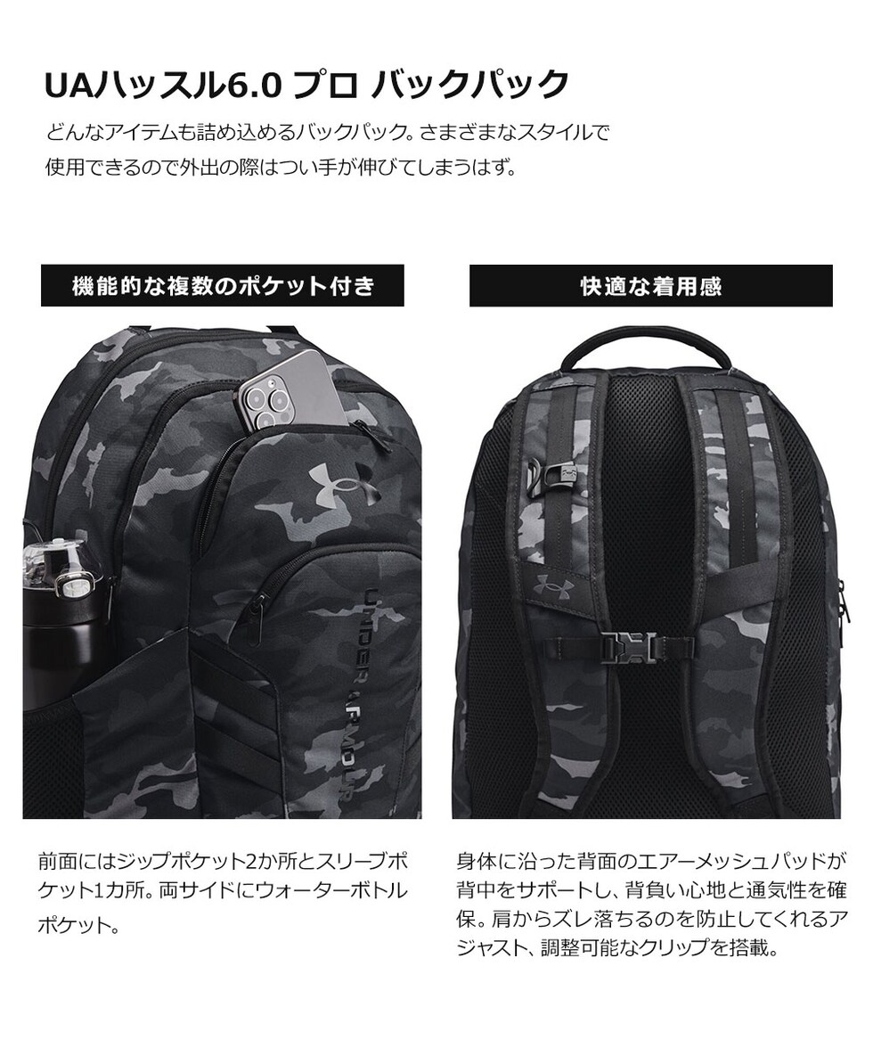 アンダーアーマー リュック 撥水 軽量 黒 ブラック 迷彩 UNDER ARMOUR UAハッスル6.0 プロ バックパック 31L 1384671