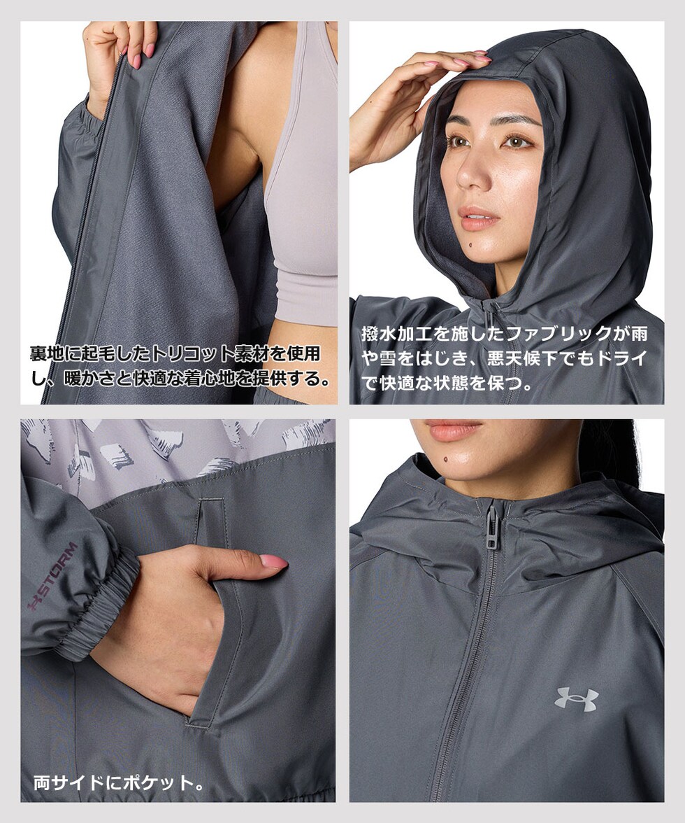 アンダーアーマー パーカー 裏起毛 ウインドブレーカー レディース 撥水 UNDERARMOUR UAトリコット ウーブン フーディー 1388192
