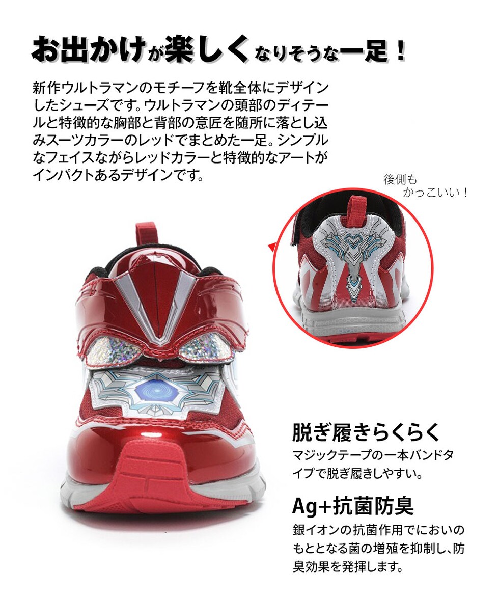 ムーンスター ウルトラマン スニーカー キッズ シューズ 子供 靴 プレゼント 幼児 履きやすい Ag+抗菌防臭 通園 保育園 幼稚園 マジックテープ UT157 MoonStar