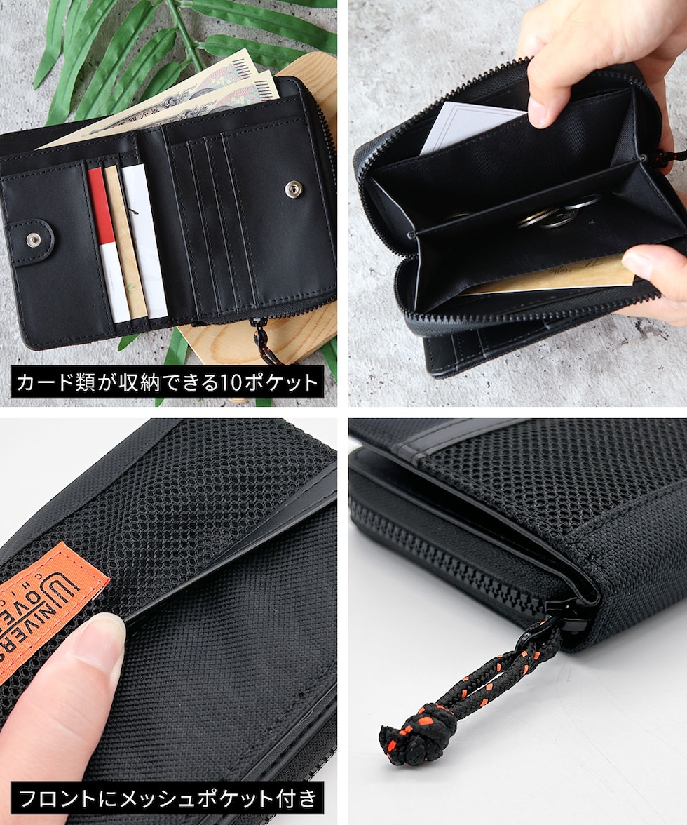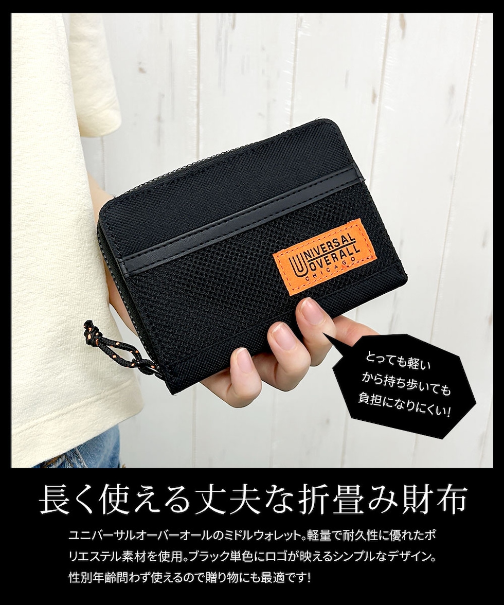 ユニバーサルオーバーオール 二つ折り 財布 軽量 カード メンズ レディース おしゃれ ブラック UNIVERSAL OVERALL uv511qg