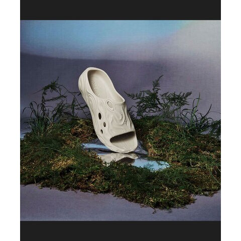 アッパー素材には藻類バイオマスから生成されたサステナブル素材「BLOOM」フォームを採用し、またスライド仕様で着脱がスムーズ。