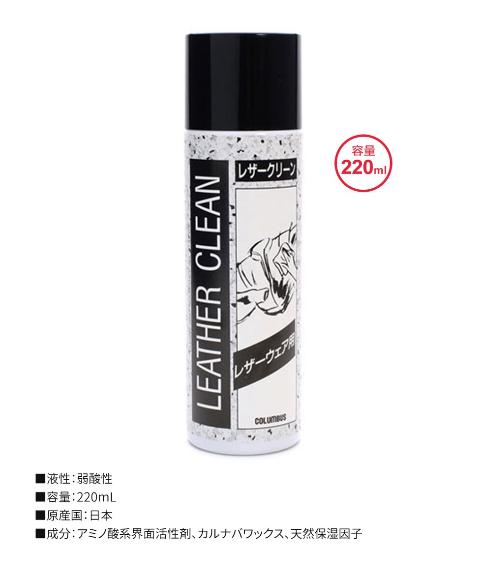 コロンブス レザークリーン 泡状 汚れ落とし 革ジャン レザーウェア 革製品 アミノ酸系界面活性剤 弱酸性 カルナバワックス 日本製 COLUMBUS