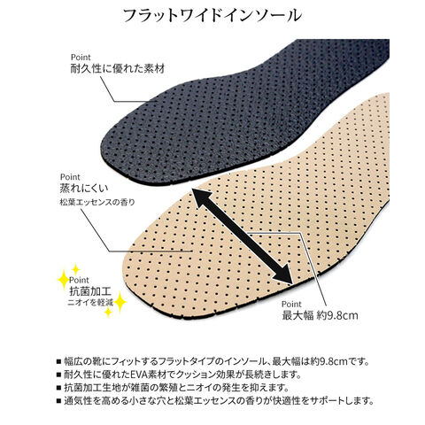 ■関連ワード■ フラットワイドインソール 幅広 広幅 EEE EEEE 靴 中敷き クッション 抗菌 防臭 消臭 通気性 EVA 男性用 フリーサイズ 24cm 25cm 26cm 27cm ブラック ベージュ インソール 立ち仕事 歩き疲れ 通勤 通学 ビジネスシューズ スニーカー ブーツ シューケア クッション性 体圧分散 衝撃吸収 通気性 蒸れ防止 防臭 消臭 汗吸収 速乾加工 消臭効果 臭い抑制 防菌 夜用インソール 防水透湿加工 メッシュ素材 消臭シート 防臭シート 吸汗パッド 取り外し可能 洗濯不可 抗菌加工 イヤなニオイ軽減 足ムレ軽減 クール感 快適 通気孔設計 高通気性装備 サイズ調整 軽量 快適 薄型 洗えない