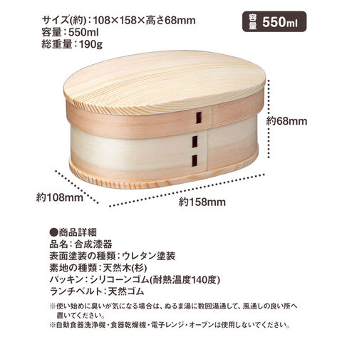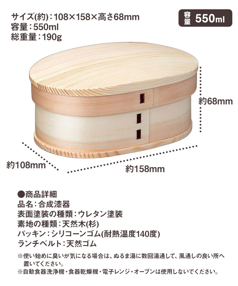 曲げわっぱ ランチボックス 弁当箱 550ml 1段 パッキン付き ベルト付き 天然木 オフィス 大人 おしゃれ 女性 シンプル プレゼント WLB6
