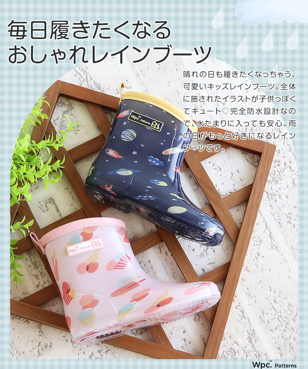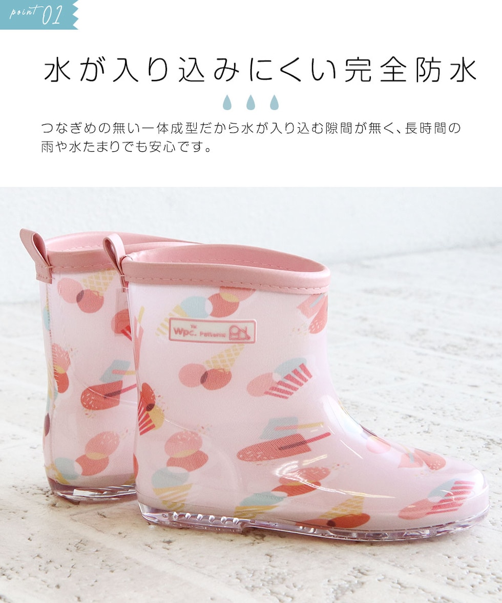 ダブリュピーシーパターンズ 長靴 キッズ 男の子 女の子 レインブーツ ショート 軽い かわいい ピンク Wpc. Patterns 5914