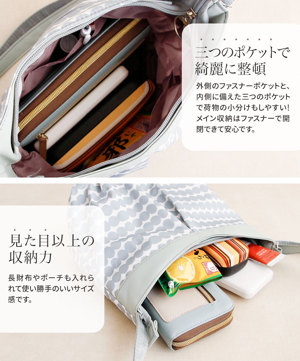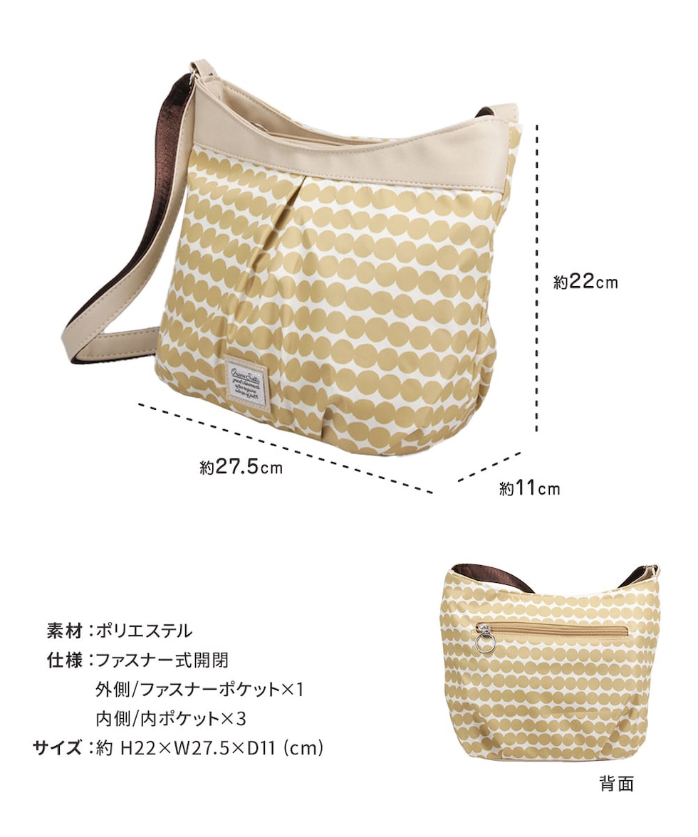 ショルダーバッグ レディース 斜めがけ 軽量 小さめ 大人 ファスナー 通勤 旅行 マチ広 収納 整理整頓 おしゃれ カジュアル 婦人 女性 鞄 ドット柄 AMELIA MCKEE