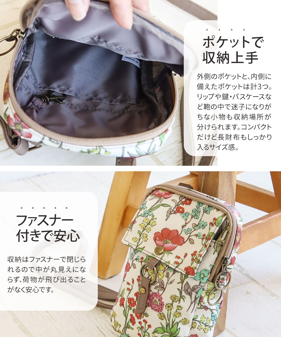 ショルダー バッグ レディース 斜めがけ 小さめ 軽量 軽い 大人 ファスナー ミニ 通勤 旅行 収納 整理整頓 コンパクト 婦人 女性 鞄 花柄 HANNAH ARLISS