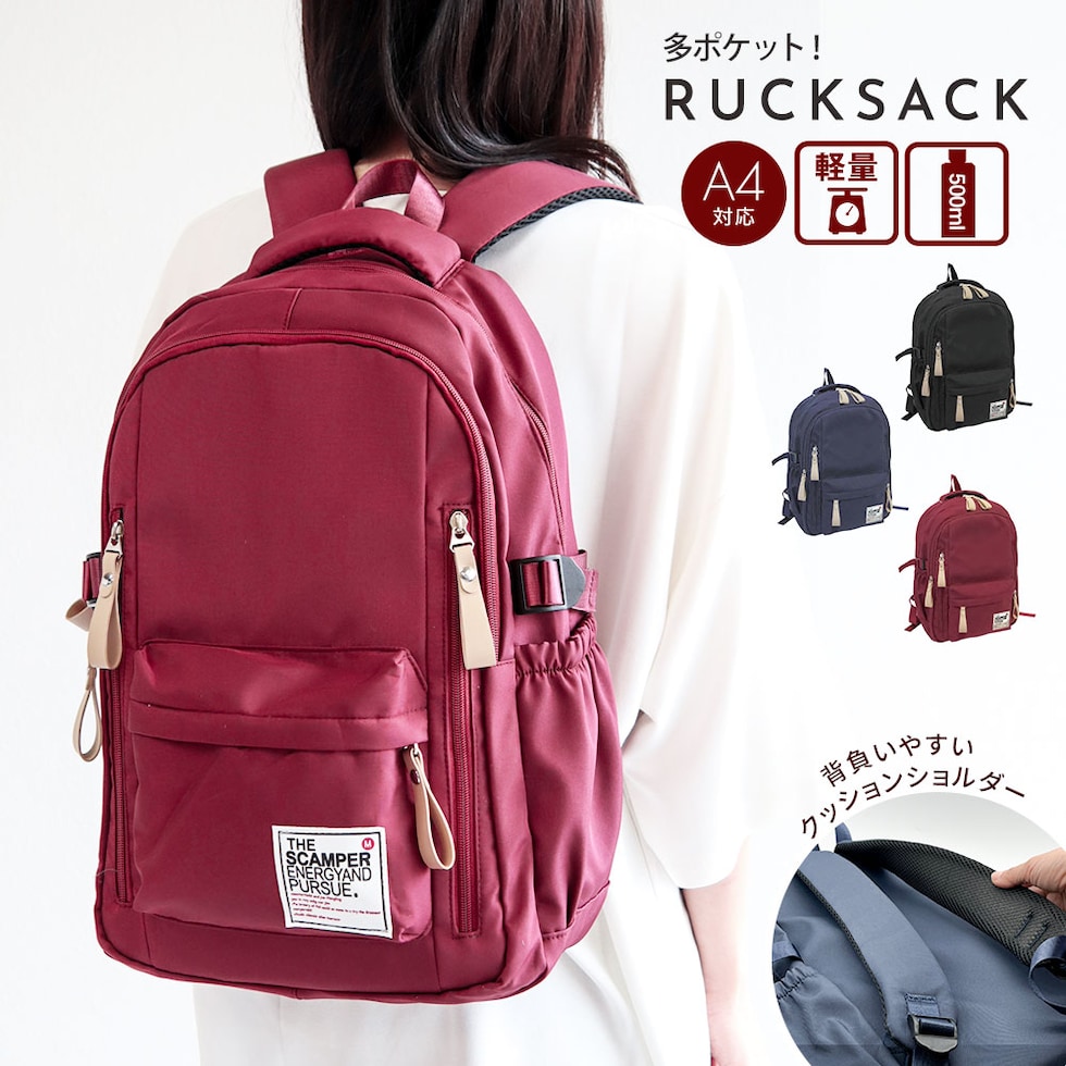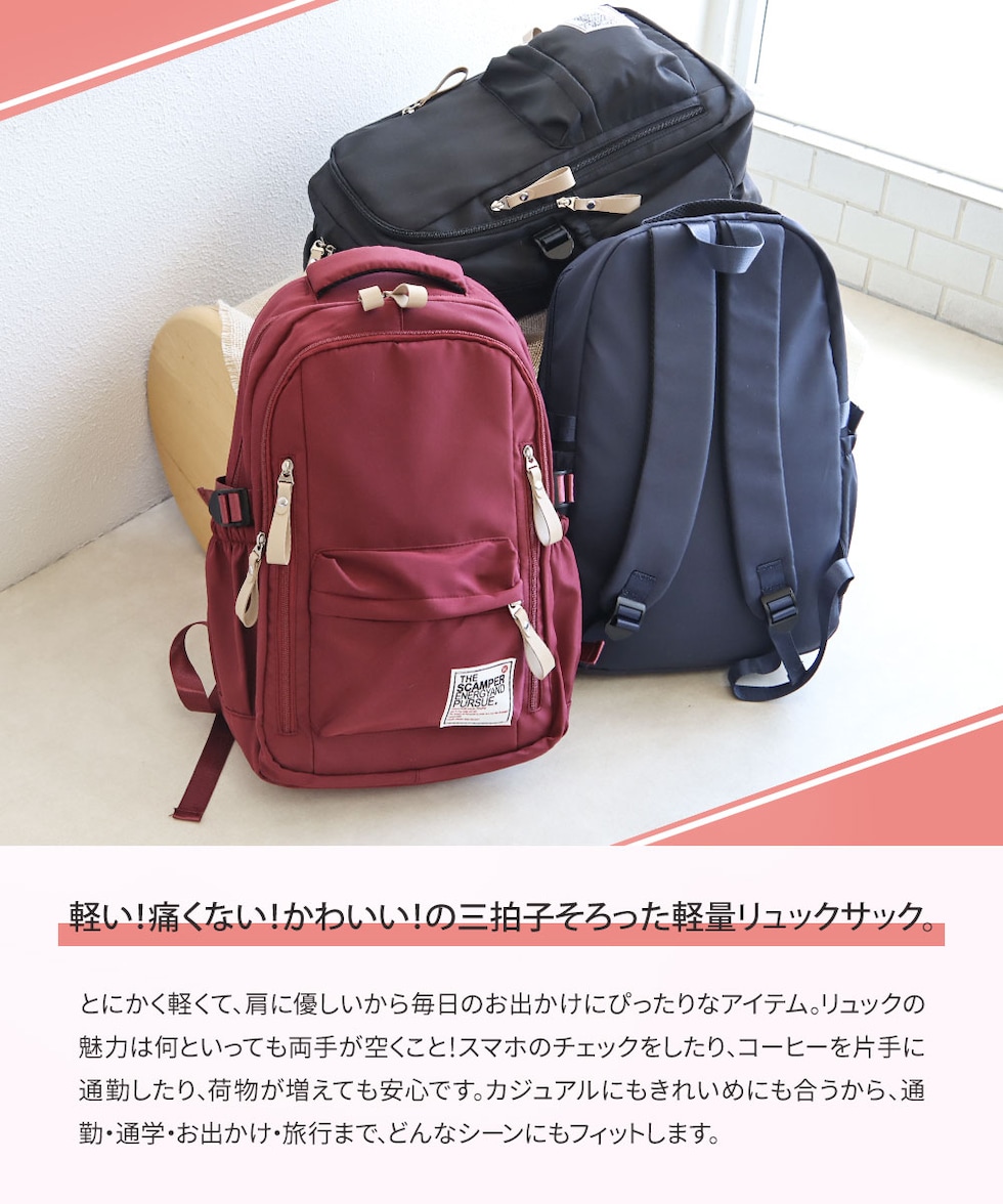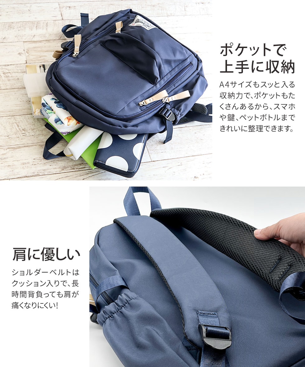 リュック サック レディース 軽量 ポケット 多い a4 大人 ショルダー クッション 肩 楽 痛くない ファスナー シンプル 旅行 整理整頓 婦人 女性 バックパック