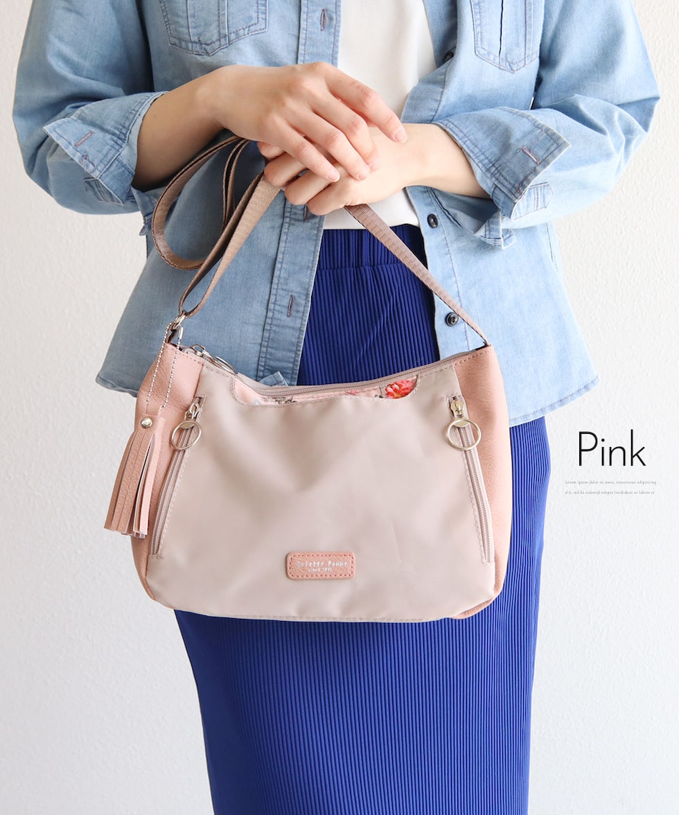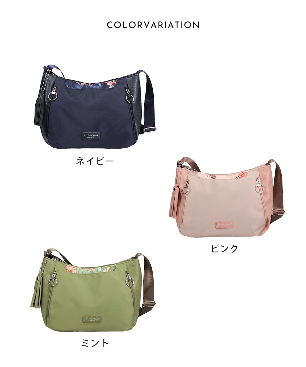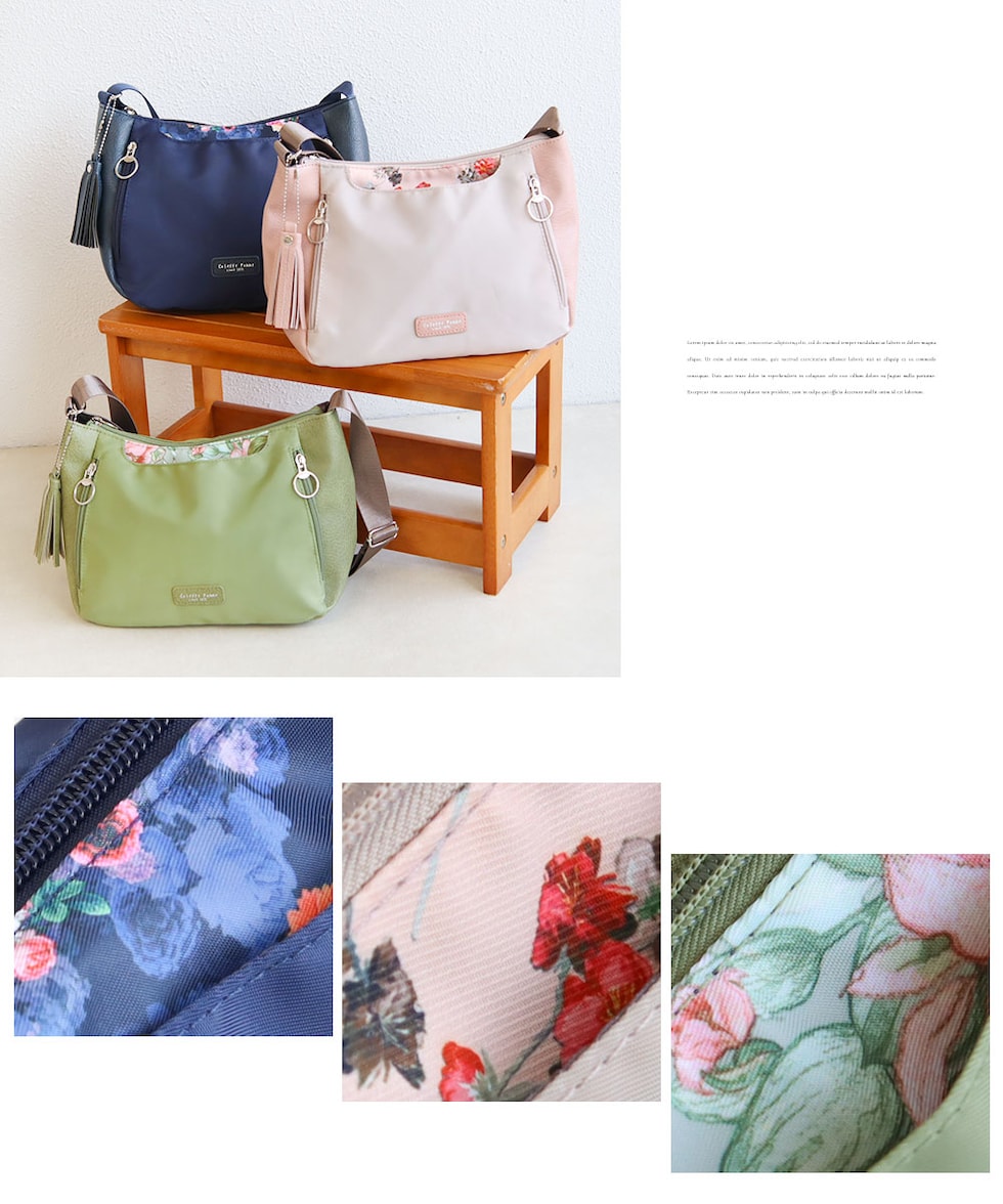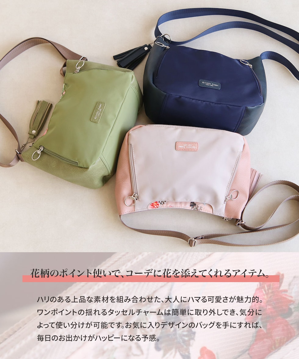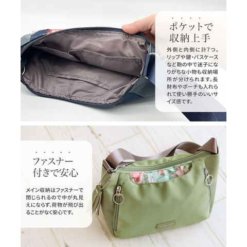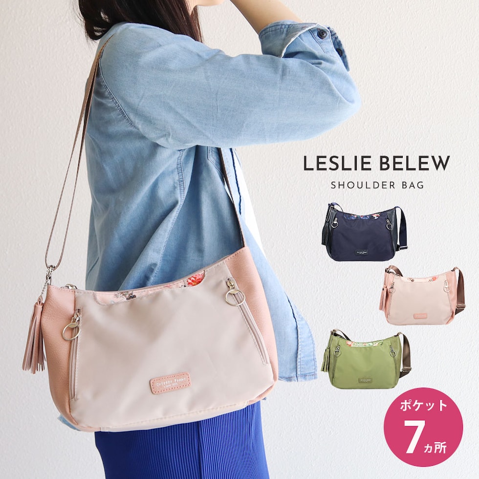 ショルダー バッグ レディース 斜めがけ 軽量 小さめ 大人 ファスナー 収納 整理整頓 おしゃれ シンプル かばん タッセル 花柄 フラワー LESLIE BELEW