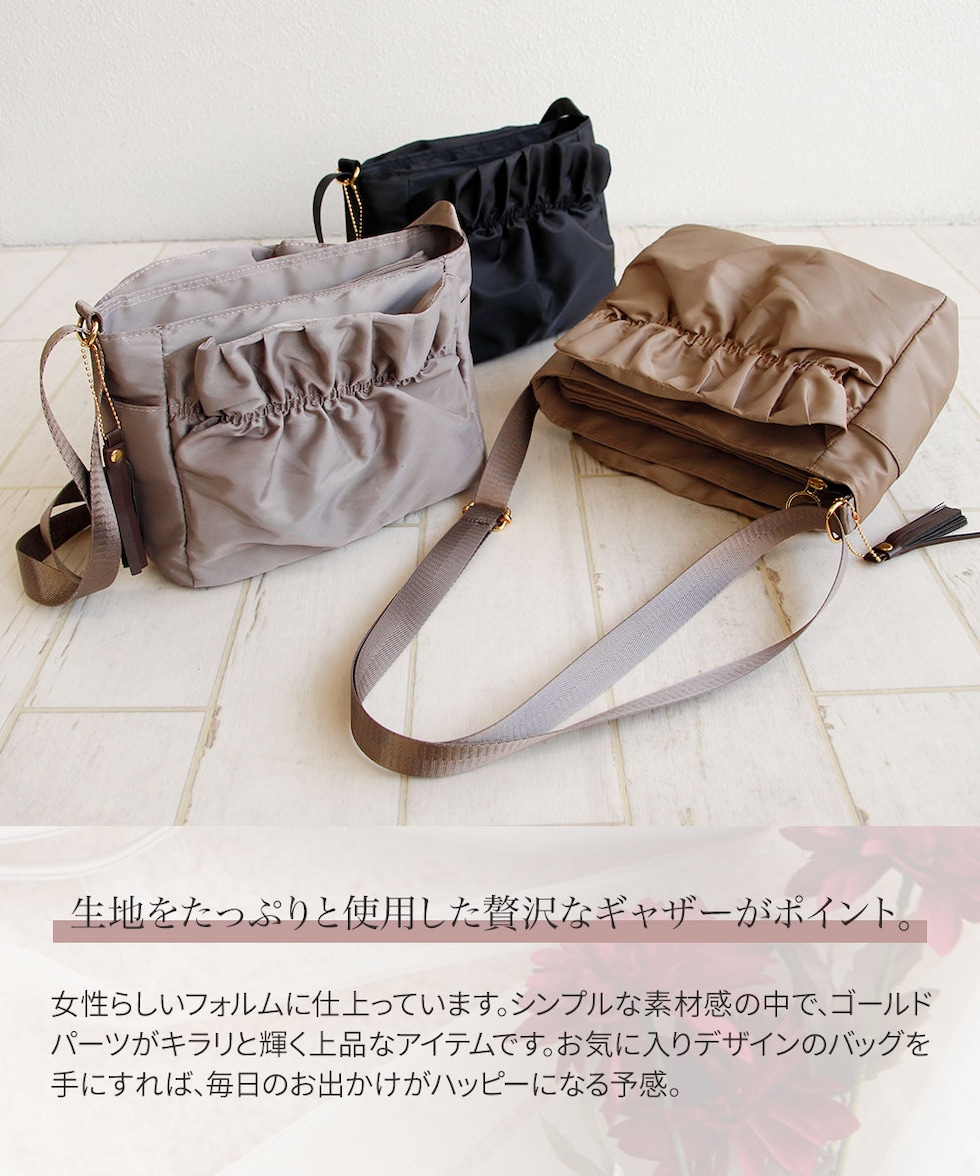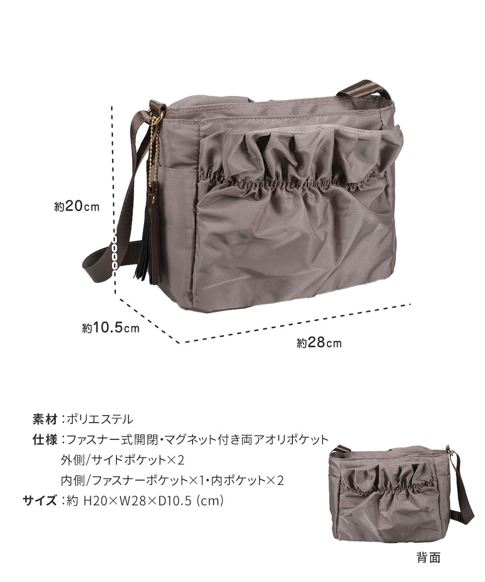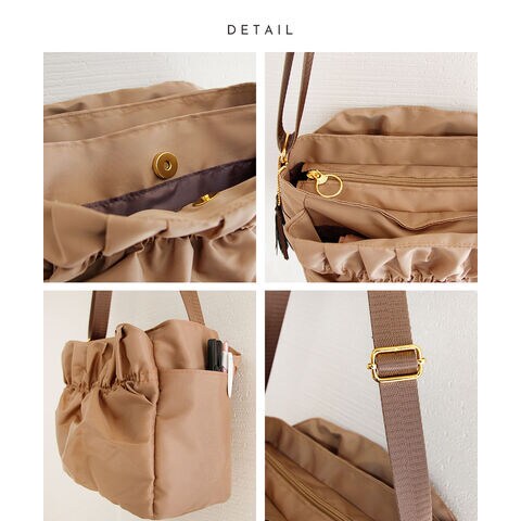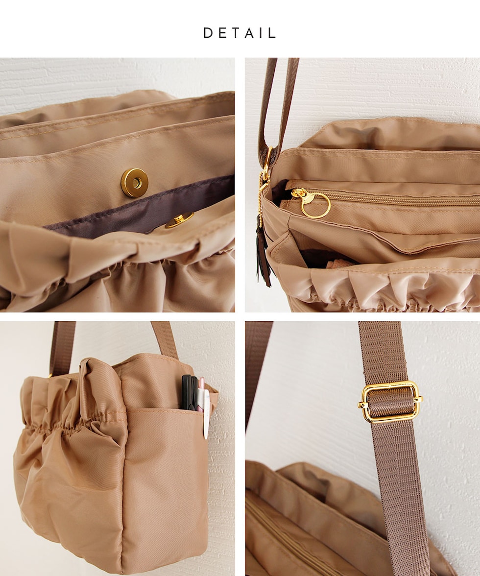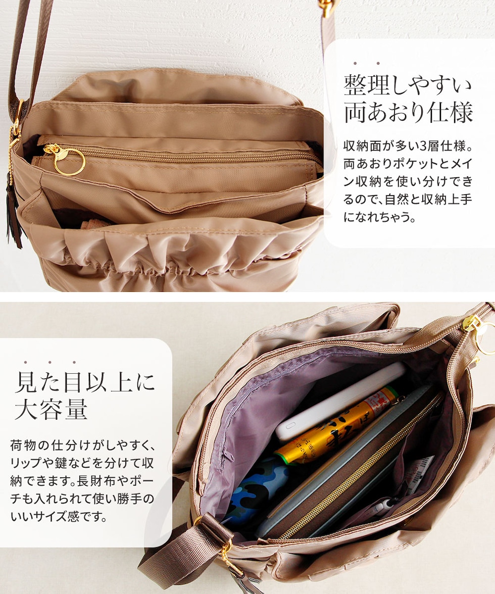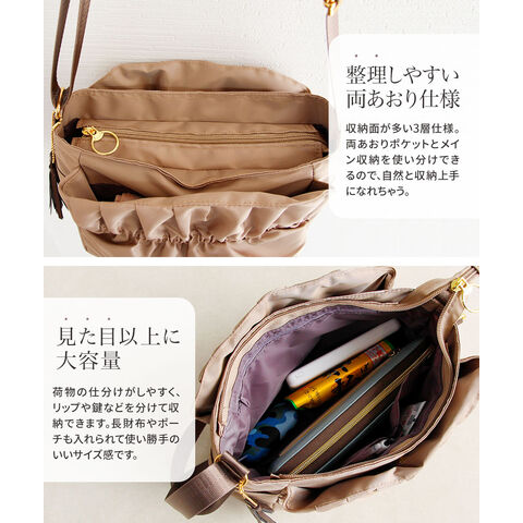 ショルダーバッグ レディース 軽量 小さめ 大人 ファスナー 通勤 旅行 マチ広 収納 整理整頓 かわいい おしゃれ カジュアル 婦人 女性物 鞄 フリル LUCIA DAINES