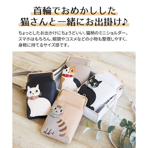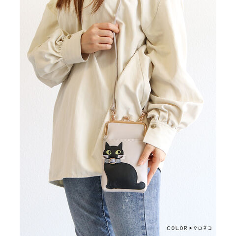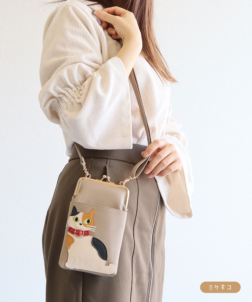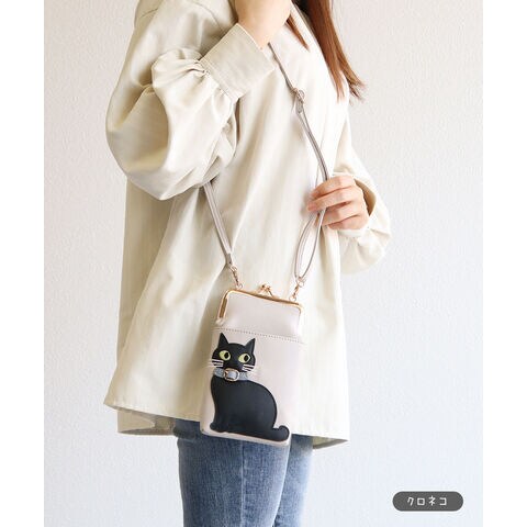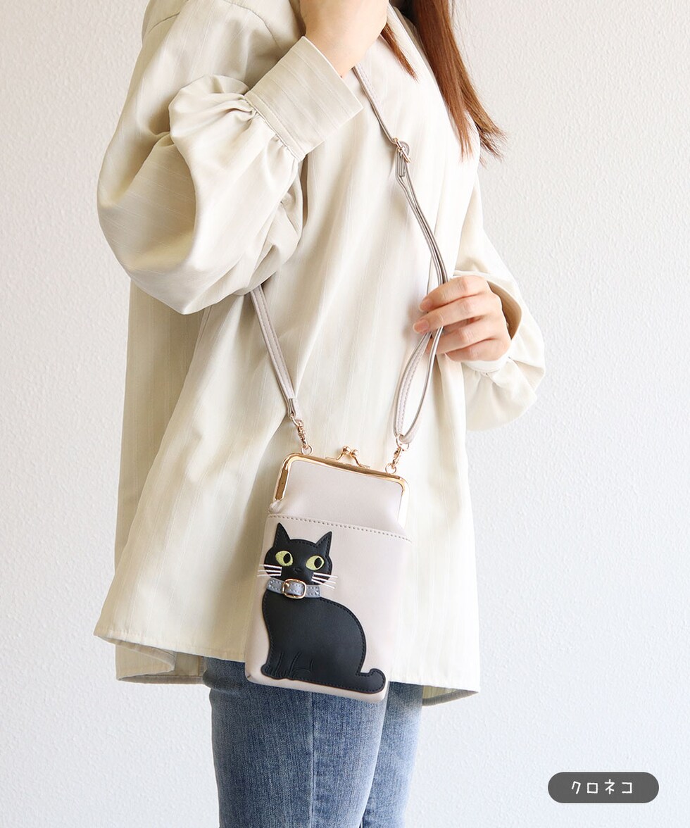 猫好きさんにもおすすめの、スマホや小物をすっきり持てる便利なショルダーバッグです。