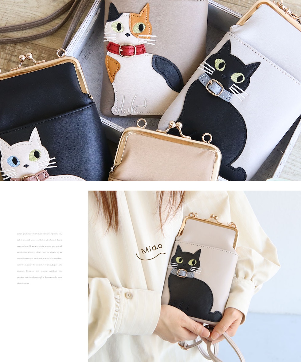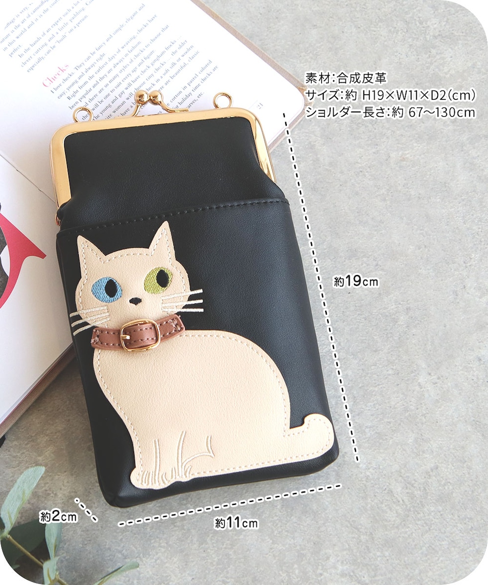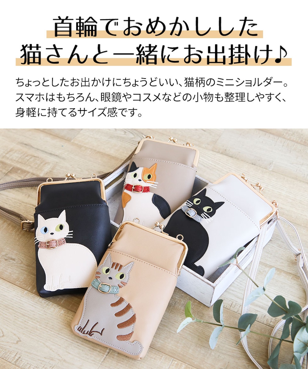 猫好きさんにもおすすめの、スマホや小物をすっきり持てる便利なショルダーバッグです。