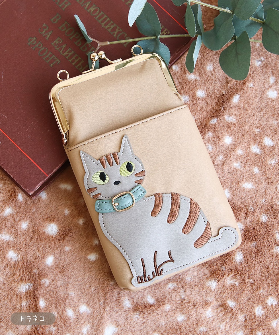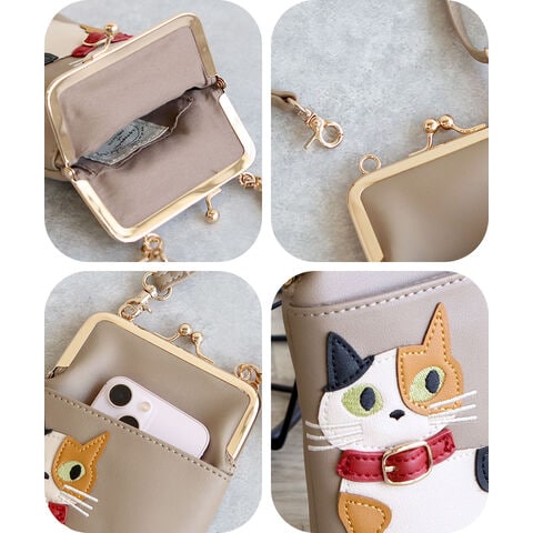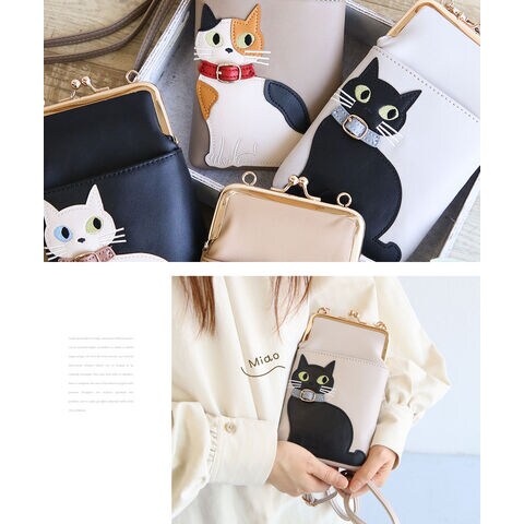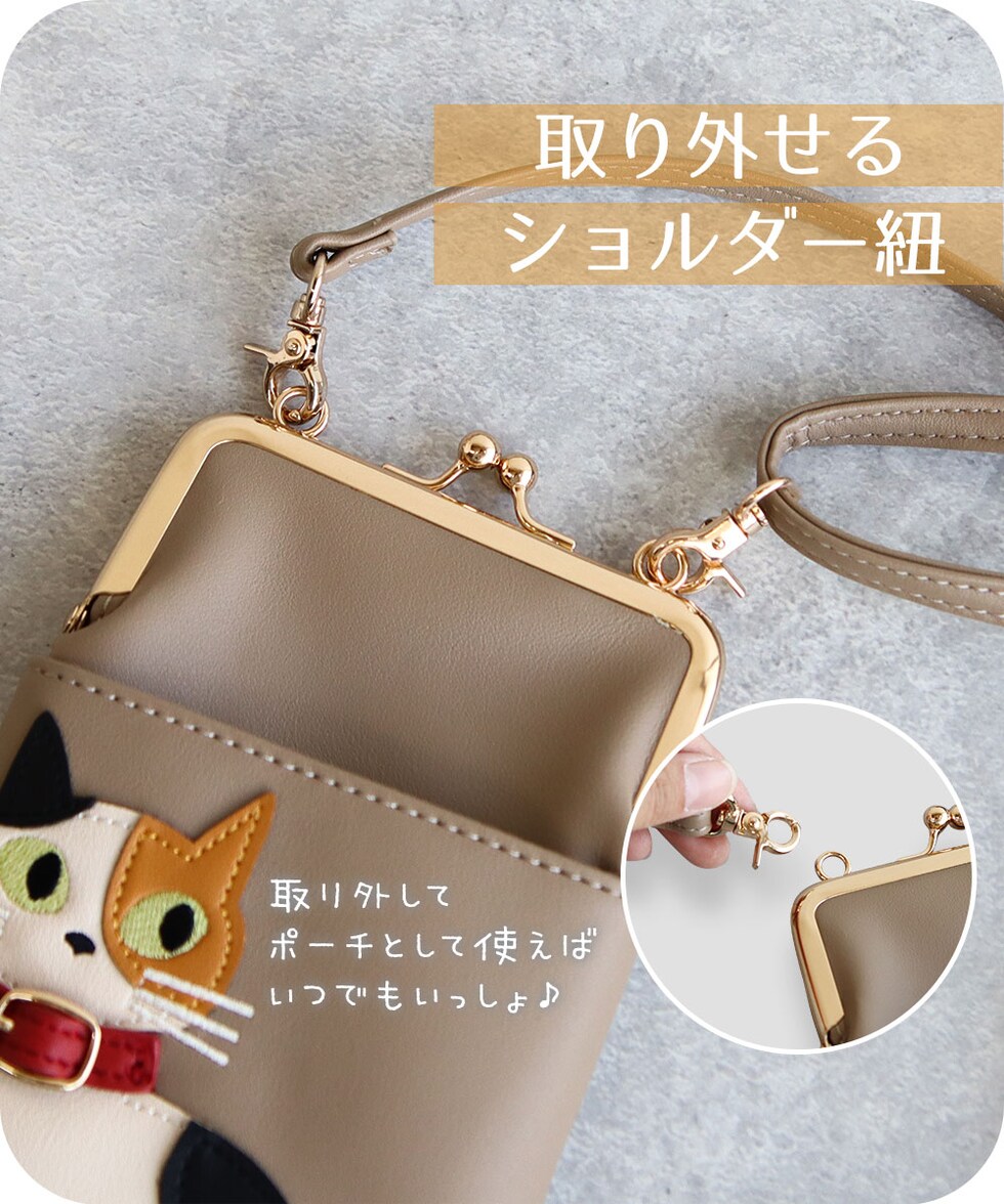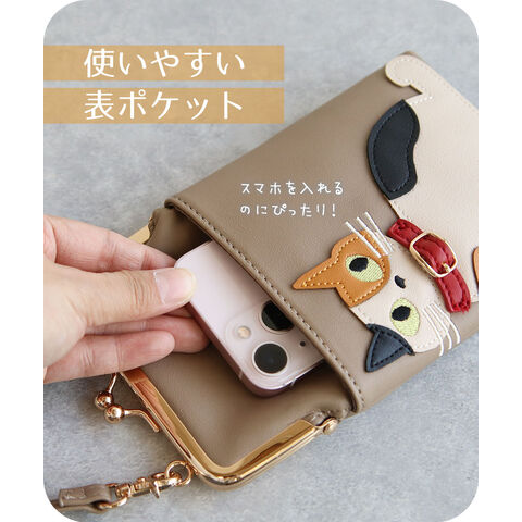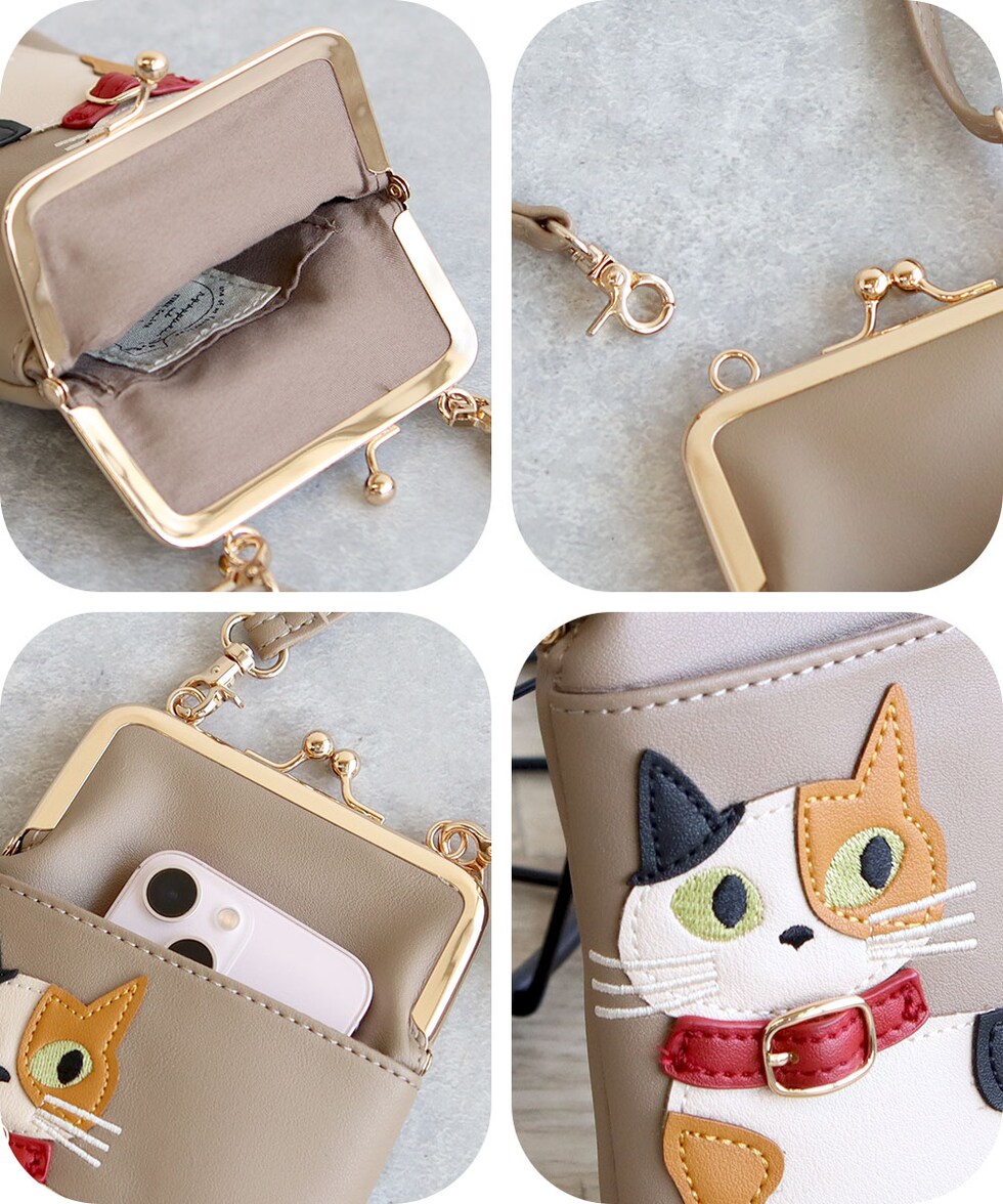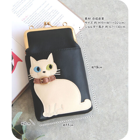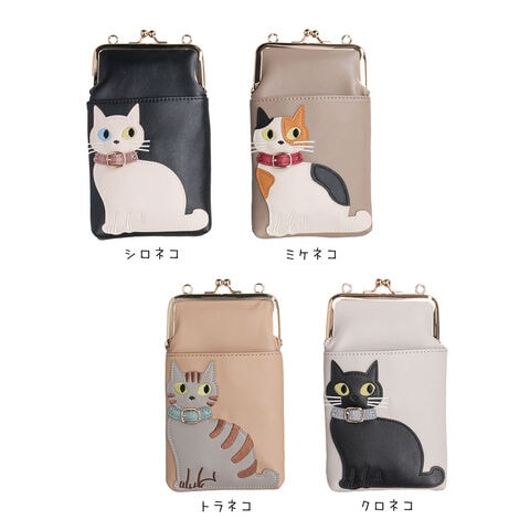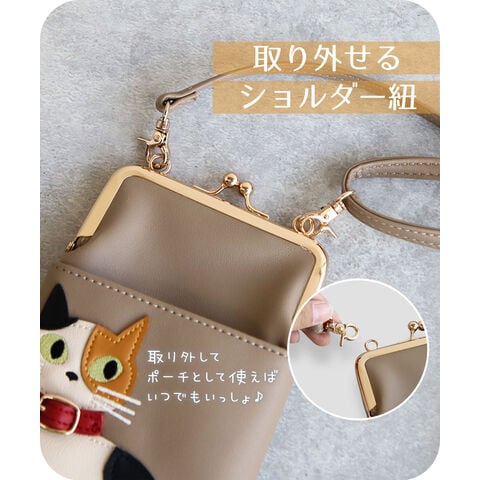 スマホショルダーバッグ レディース 斜めがけ 大人 小さめ 猫柄 2way がま口 ポーチ 旅行 女性 婦人 鞄 かばん シロ ミケ トラ クロ