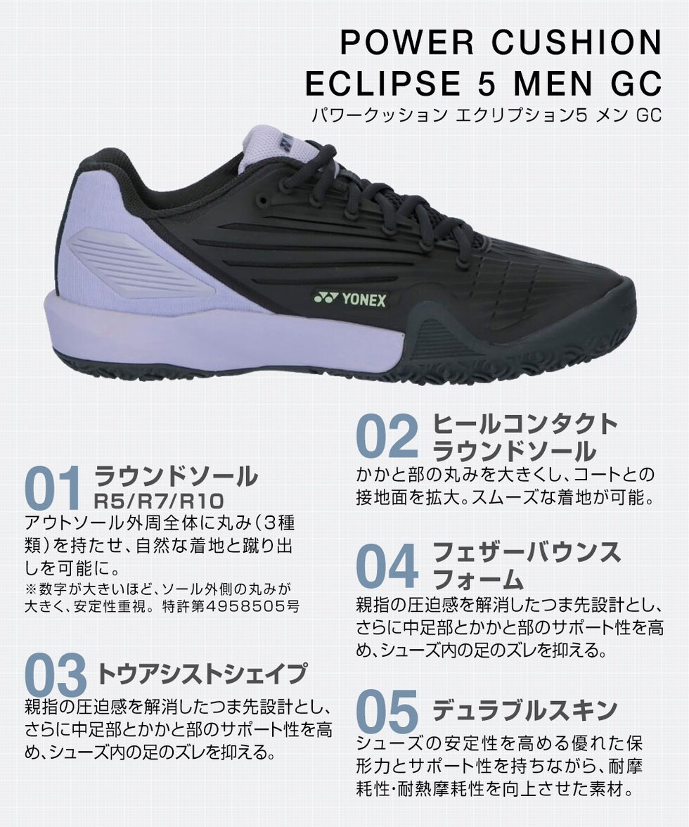 ヨネックス テニスシューズ クレー 砂入り人工芝コート用 パワークッション 軽量 靴 試合 YONEX エクリプション5 メン GC SHTE5MGC