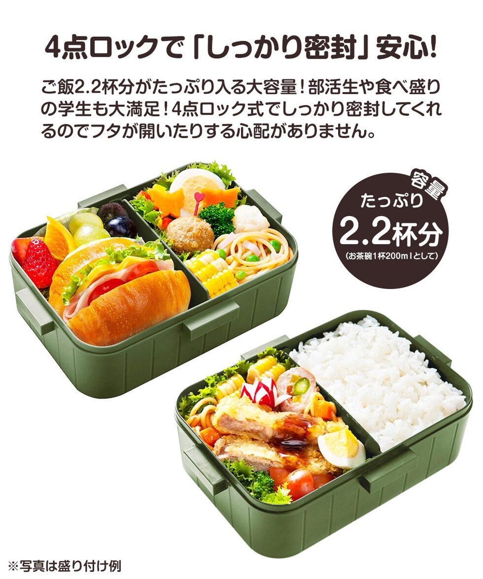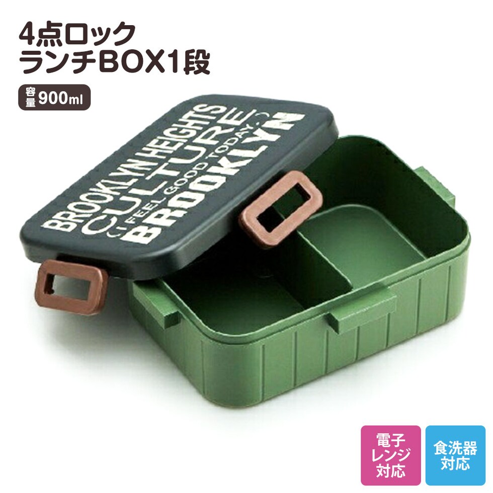 弁当箱 4点ロック 1段 電子レンジ対応 ランチボックス 男性 メンズ 大人 大きめ シンプル おしゃれ カーキグリーン 日本製 YZFL7AG