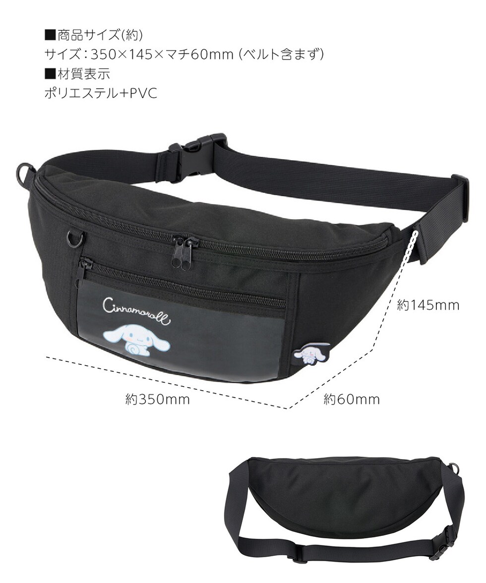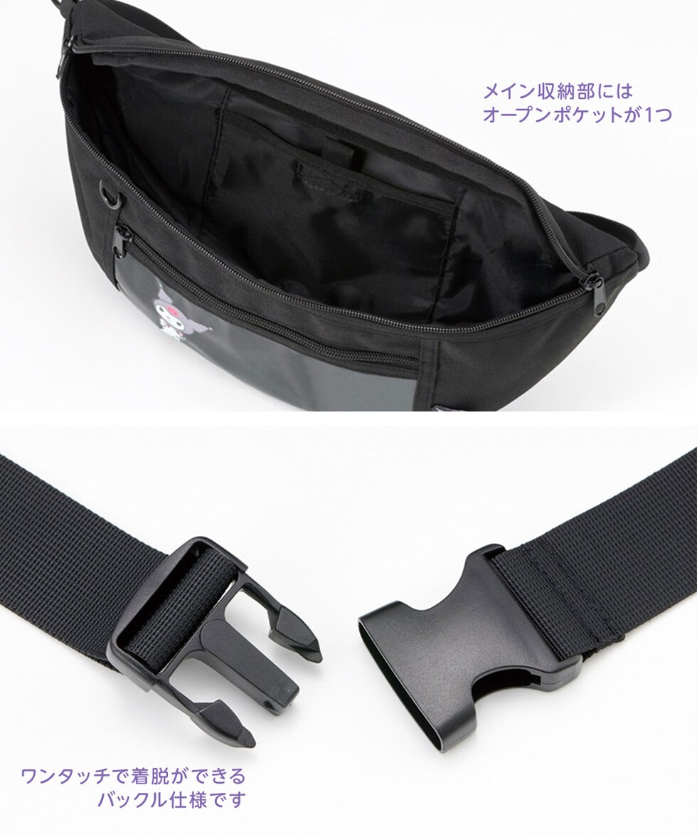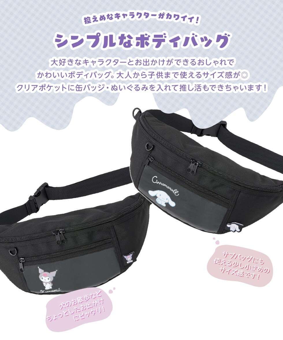 ボディバッグ レディース クリアポケット 痛バッグ 推し活 缶バッジ アクキー かわいい シンプル 透明窓 黒 シナモロール クロミ ZBB1