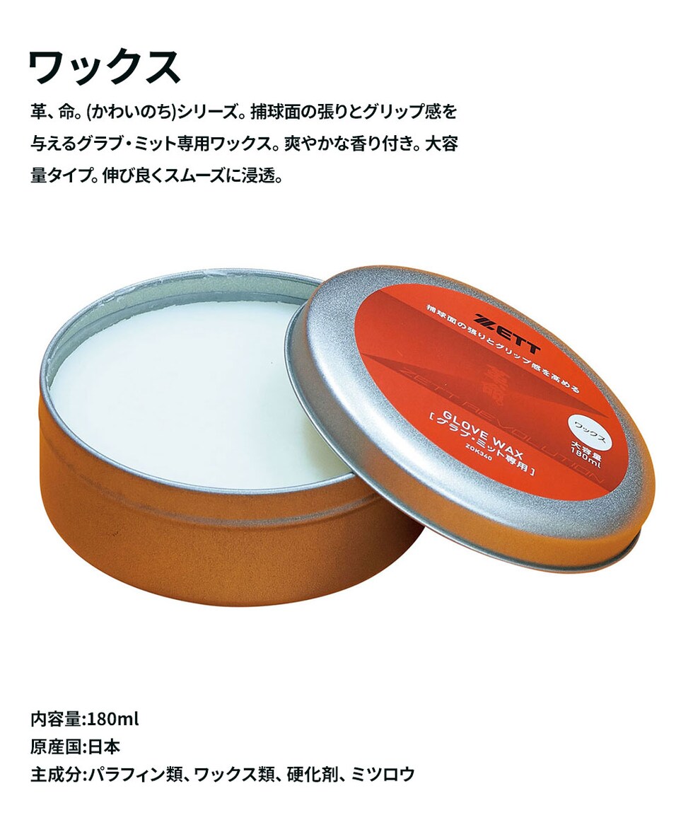 ゼット 野球 ソフトボール グラブ メンテ用品 ワックス かわいのち 革命 皮 部活 日本製 ベースボール クラブチーム 練習 ZOK340 ZETT