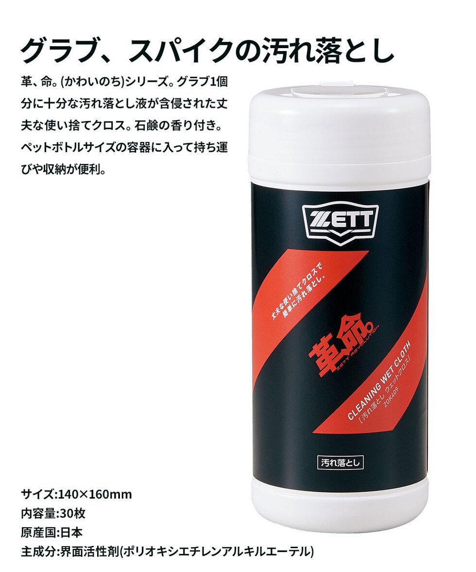ゼット 野球 ソフトボール グラブ メンテ用品 汚れ落とし クロス 30枚 かわいのち 革命 部活 練習 ベースボール 日本製 ZOK409 ZETT