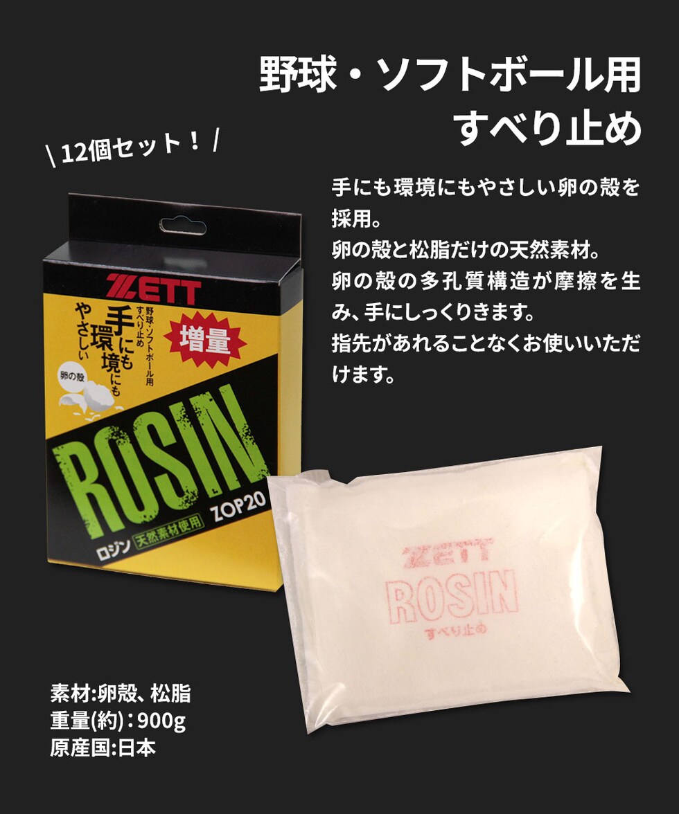 ゼット 野球 ソフトボール グラブ メンテ用品 すべり止め ロジン 12個入り 卵殻 ピッチャー 部活 スポーツ ベースボール ZOP20 ZETT