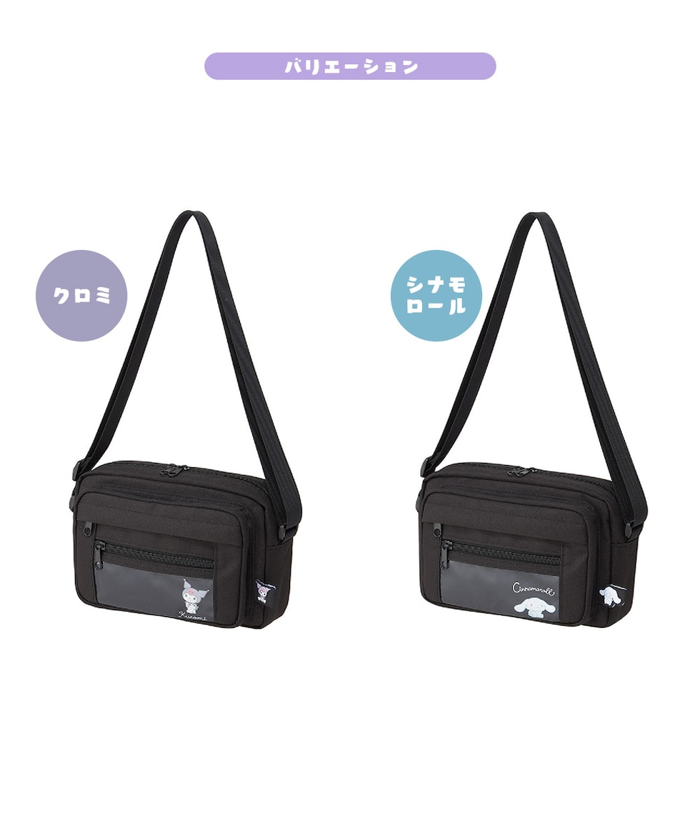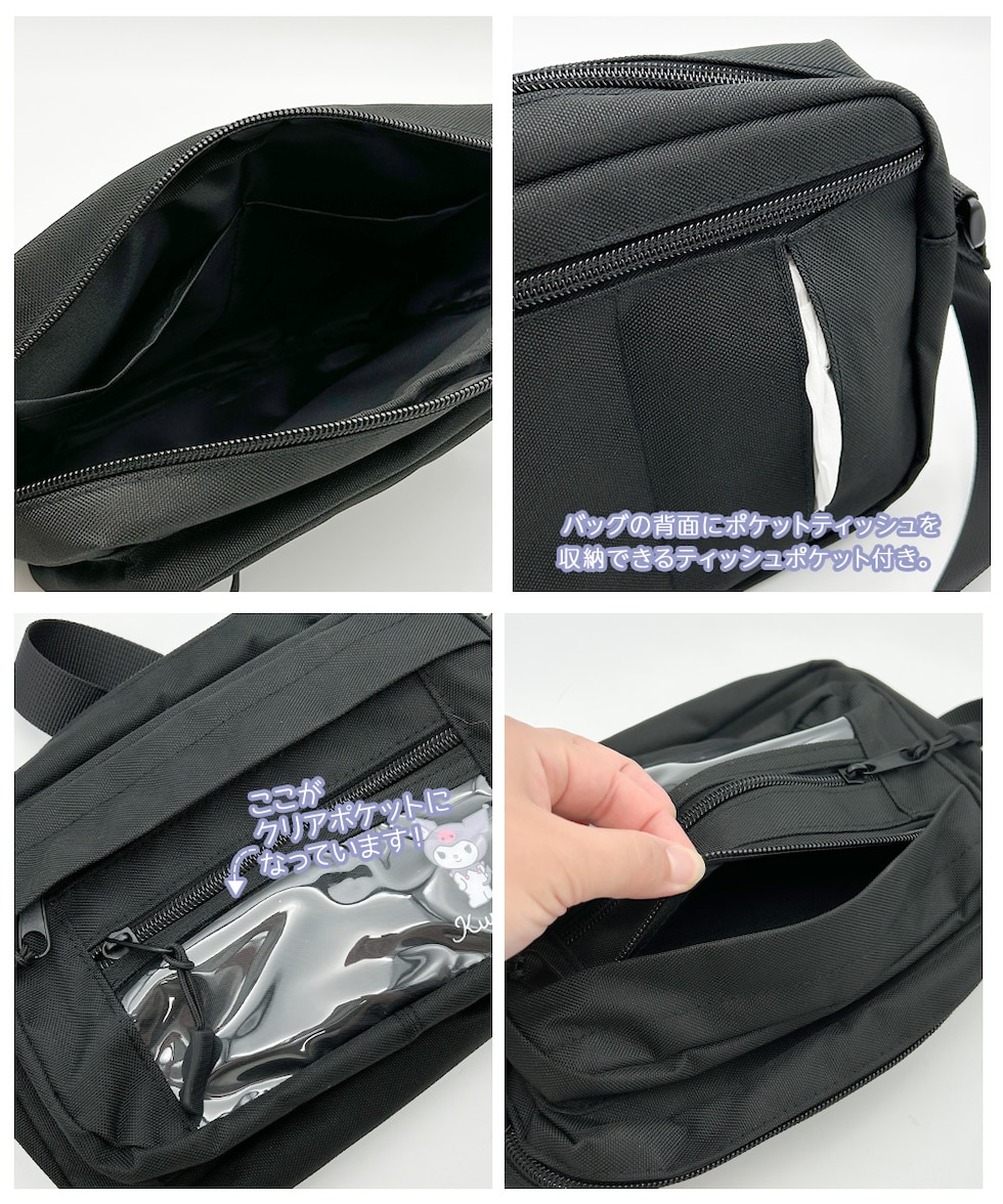 ショルダーバッグ レディース 小さめ クリアポケット 推し活 缶バッジ アクキー かわいい シンプル 透明窓 黒 シナモロール クロミ ZSB1
