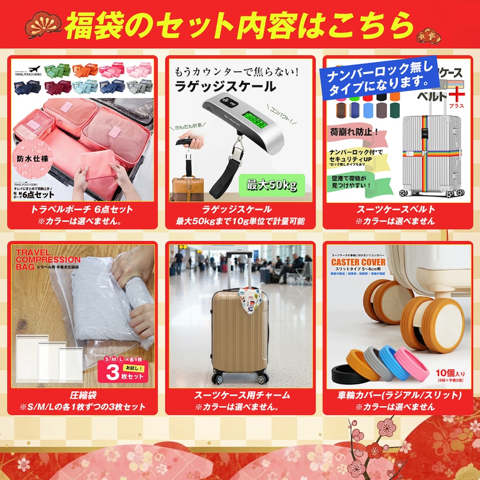 \新春初売り/2026年福袋 トラベル用品 豪華6点セット トラベルポーチ ラゲッジスケール スーツケースベルト 圧縮袋 チャーム 車輪カバー キャスターカバー 旅行グッズ 国内 海外 便利グッズ 旅行用品 出張 帰省 送料無料 ※一部地域は除く【2026lb-6】トラベルソムリエ