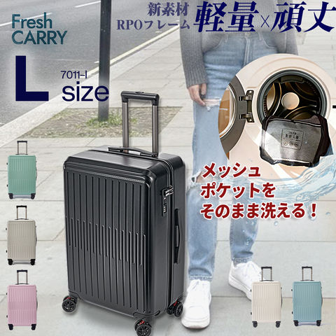 洗える スーツケース キャリーケース キャリーバッグ Lサイズ 28インチ 頑丈 軽量 清潔 大容量 ダブルキャスター ストッパー付 小型 コンパクト 国内 旅行 ミルキーカラー Fresh CARRY 6~10泊【7011-l】ミントグリーン