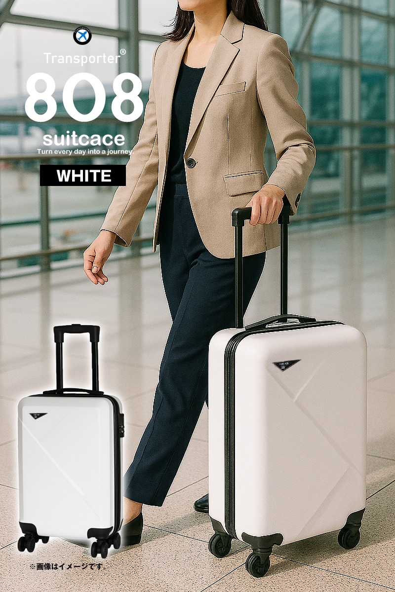 スーツケース キャリーケース キャリーバッグ 超軽量 S サイズ 1?3泊 大容量 静音 旅行 ビジネス 出張 修学旅行 国内旅行 ハードケース Transporter 【808S】 ホワイト トラベルソムリエ t-s1