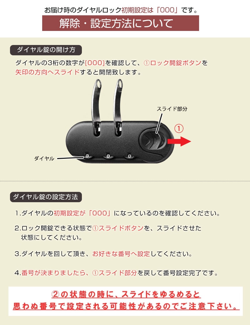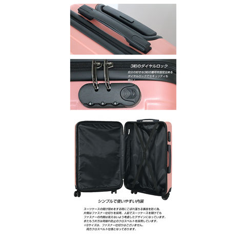 | ■スーツケース【機内持ち込み】について 国際線・国内線(100席以上)の機内に持ち込みに適合したサイズとなっております。 LCC・MCCを除く航空会社で機内持ち込みしていただけます。また路線、飛行機の種類により機内に持ち込む事が出来ない場合がございますので、予めご了承願います。 ■キャリーバーで本体を持ち上げないで下さい。 ■キャリーバーには生産時に使用する潤滑油が付着している場合がございます。その場合は拭いてからご使用ください。 ■不整地ではご利用いただけません。 ■商品サイズ・カラーは、企画サイズとなります。 ■掲載の商品画像につきましては、モニターの種類・設定等により、実際の商品とは素材感や色味が異なる見え方をする場合があります。 ■細かなキズや、製造上避けられないシミ・シワなどがある場合があります。 ■商品仕様は、予告無く仕様変更される場合がございます。 ■アウトレット品につき国内での検品は一切しておりません。 ■アウトレットにて販売しております。アウトレットの訳有り品として ・多少の傷や汚れがある ・チャックが少し固い ・縫製が少し甘い ・縫製のラインが少し歪んでいる ・ミシンで縫いすぎて糸をほぐした跡がある ・梱包には再利用箱を利用している ・タグのついていない商品がある ・多少のにおい等(接着剤やクリーニング液)が残っている ・その他ご使用に問題のない物等など といった上記の状態の商品が含まれている場合がございますが、予めご了承願います。 |