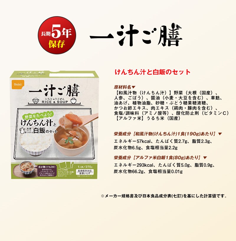 防災セット 中身だけ ごはん 非常食 5年保存 一汁ご膳 尾西のけんちん汁&白飯セット 2食分 長期保存食 災害備蓄 地震対策 避難用 保存ごはん 【e-防災550】トラベルソムリエ t-bou2