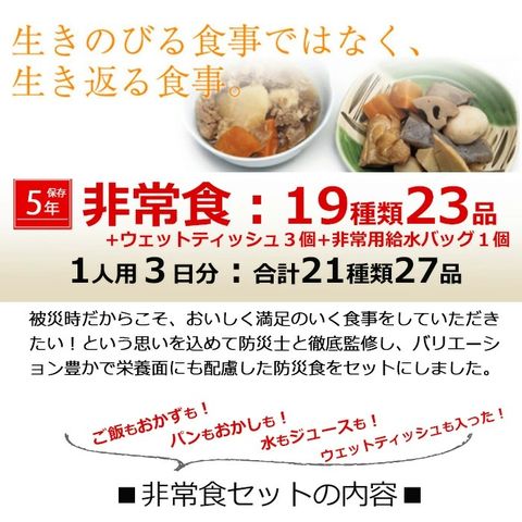 ■災害発生後はご注文が非常に殺到いたします。納期にお時間をいただく場合がございます。セット内容は予告なく、同等の品に変更になる場合がございます。