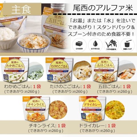 すべて国産米を使用し、非常用持ち出し袋などにセットしたり、キャンプなどでもお使いいただける 美味しく手軽なごはんです!