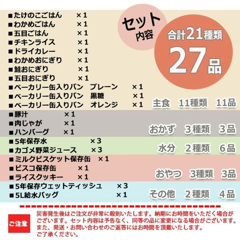 こちらは非常・保存食21種類27点セットのページです。