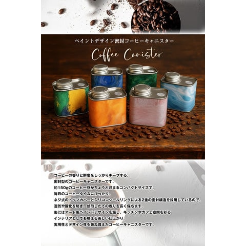 | 【“香りもデザインも楽しむ”ペイントデザイン密閉コーヒーキャニスター】 おしゃれなペイント柄アート缶/コーヒーキャニスターで、毎日のコーヒータイムを特別な瞬間に。 ギフトにもぴったりのデザイン缶タイプ密封コーヒーキャニスターは、見た目の良さと実用性を両立した保存容器です。 【2重密封で鮮度キープ】 シールリング+ネジ式トップカバーの2重密閉構造で、コーヒー豆の酸化速度を軽減。 【毎日の朝食時やブレイクタイムに持ち運びやすい、150g缶】 酸化を防ぐ為に、直射日光を出来るだけ避けて下さい。 【空間を彩るアート風デザイン】 ペイント柄密閉コーヒーキャニスターなら、カフェ風インテリアにもぴったり。 コンパクトだからキッチンやカフェ棚にスッキリ並べられ、コーヒー豆の保存に最適! ※画像はイメージです。コーヒー豆は付属しておりません。 |