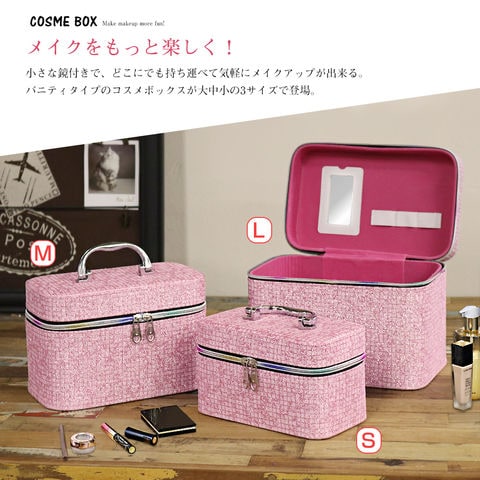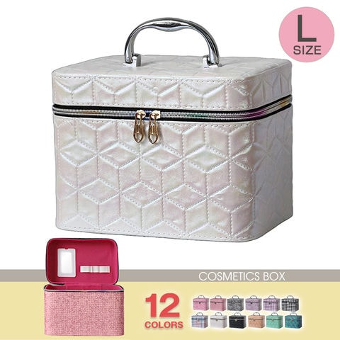 メイクボックス 鏡付き コスメボックス ミラー L サイズ 持ち運び 化粧品 化粧ボックス 化粧箱 メイク コスメケース 収納 化粧品入れ バニティケース ギフト プレゼント 【11345】 14A/スノーホワイト トラベルソムリエ t-cb5
