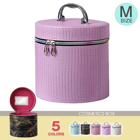 メイクボックス 鏡付き コスメボックス ミラー M サイズ 持ち運び 化粧品 化粧ボックス 化粧箱 メイク コスメケース 収納 化粧品入れ バニティケース ギフト プレゼント 筒形【11345r】 12/ストライプパープル トラベルソムリエ t-cb5