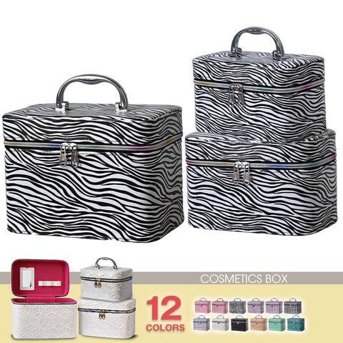 メイクボックス 鏡付き コスメボックス ミラー S/M/L サイズ 持ち運び 化粧品 化粧ボックス 化粧箱 メイク コスメケース 収納 化粧品入れ バニティケース ギフト プレゼント 3サイズセット 【11345】 06/ゼブラブラック トラベルソムリエ t-cb5