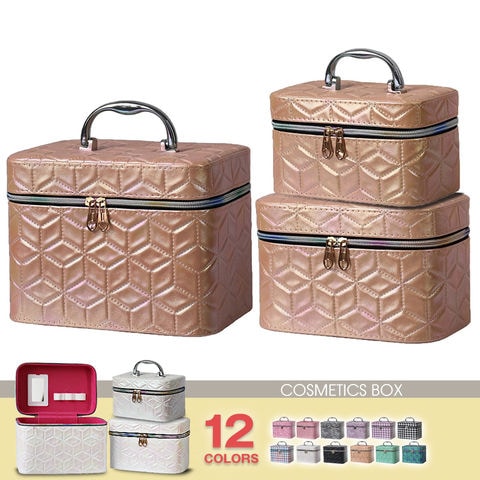 メイクボックス 鏡付き コスメボックス ミラー S/M/L サイズ 持ち運び 化粧品 化粧ボックス 化粧箱 メイク コスメケース 収納 化粧品入れ バニティケース ギフト プレゼント 3サイズセット 【11345】 14C/シャンパンゴールド トラベルソムリエ t-cb5