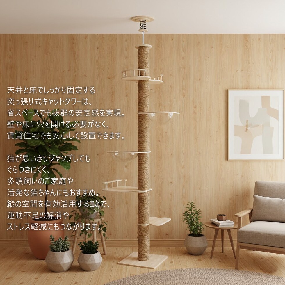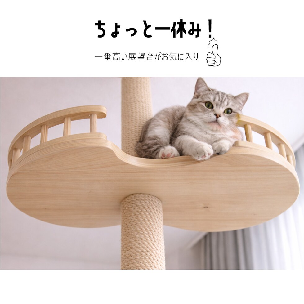 キャットタワー 突っ張り スリム 木製 猫タワー 大型 極太 12cm 多頭飼い 宇宙船 展望台 爪とぎ 麻 安定性 丈夫 猫 キャット ねこ キャットツリー つっぱり 木登りタワー 送料無料 【DH-28-15】 トラベルソムリエ t-pet9
