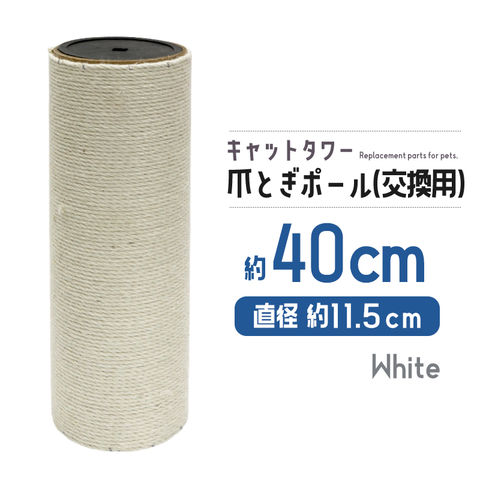 【約40cm/麻縄巻き 白】猫 爪とぎポール 極太 交換用支柱 ネコ用 爪研ぎポール ペット用品 猫用品 支柱タイプ 爪とぎ 交換パーツ M-10 【DH-30-15】 トラベルソムリエ t-pet9