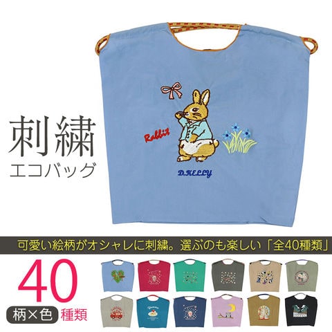 刺繍エコバッグ トートバッグ 折りたたみ 肩掛け 巾着 生活防水 コンパクト 軽量 おしゃれ ショッピングバッグ マイバッグ お買い物バッグ スポーツクラブ レジ袋代用 トラベルバッグ メール便 【ecobag】06/ラビットブルー トラベルソムリエ t-trag7