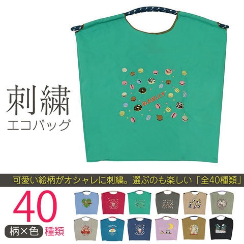 刺繍エコバッグ トートバッグ 折りたたみ 肩掛け 巾着 生活防水 コンパクト 軽量 おしゃれ ショッピングバッグ マイバッグ お買い物バッグ スポーツクラブ レジ袋代用 トラベルバッグ メール便 【ecobag】18/ドーナツグリーン トラベルソムリエ t-trag7