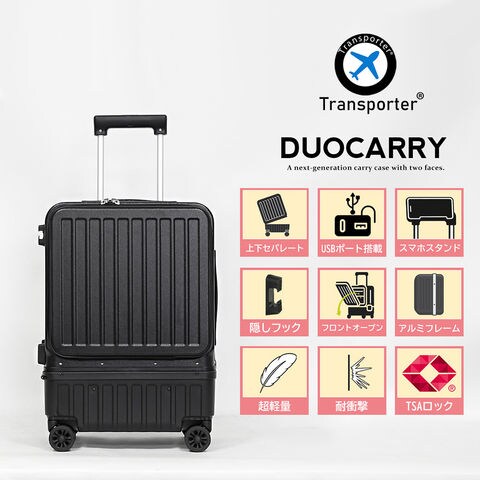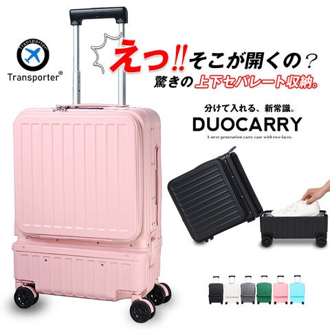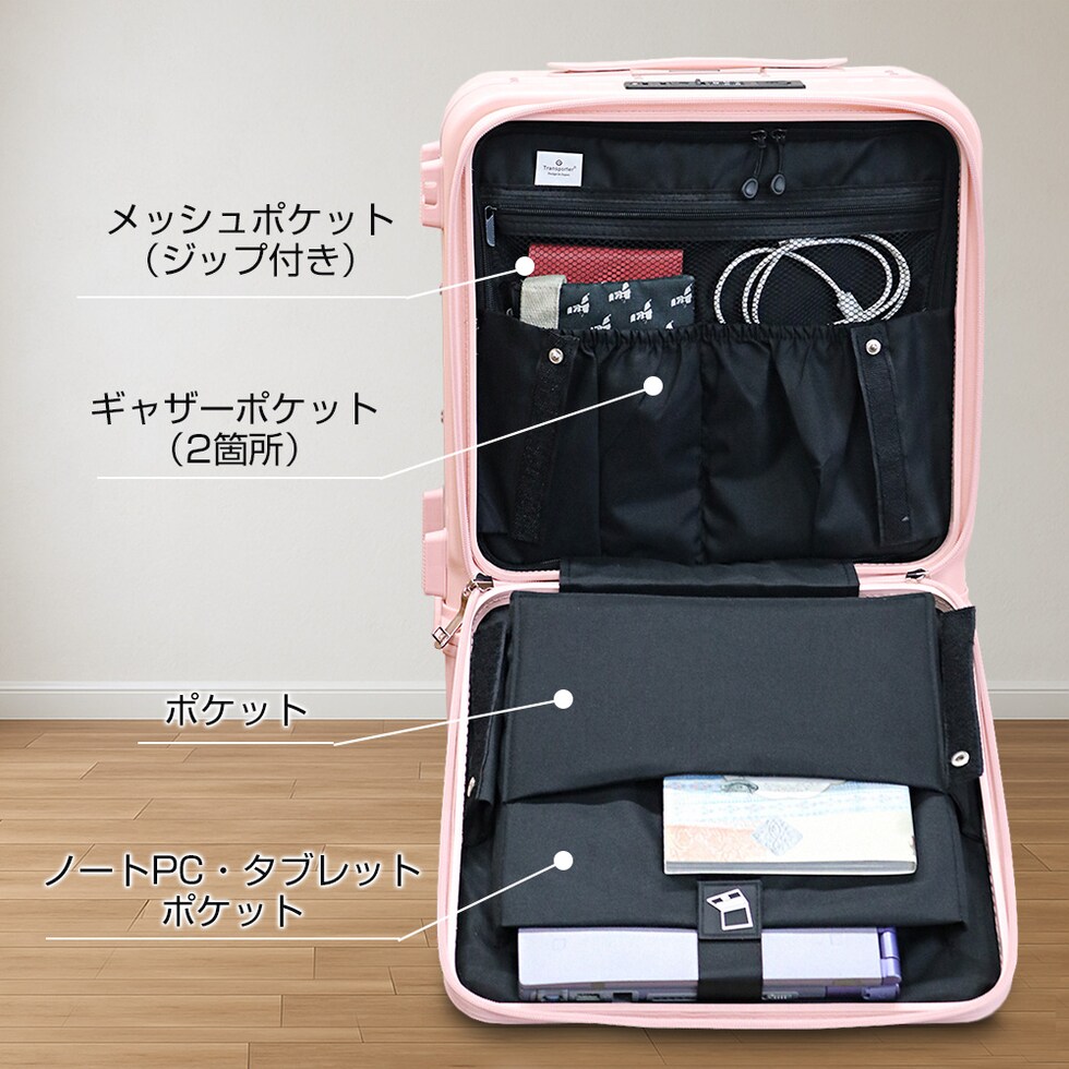 スーツケース 機内持ち込み フロントオープン 上下セパレート アルミフレーム キャリーケース S サイズ 1~3泊 40L TSAロック USBポート 静音 旅行 ビジネス 出張 修学旅行 国内旅行 ハードケース Transporter 【g21】ピンク トラベルソムリエ t-s1