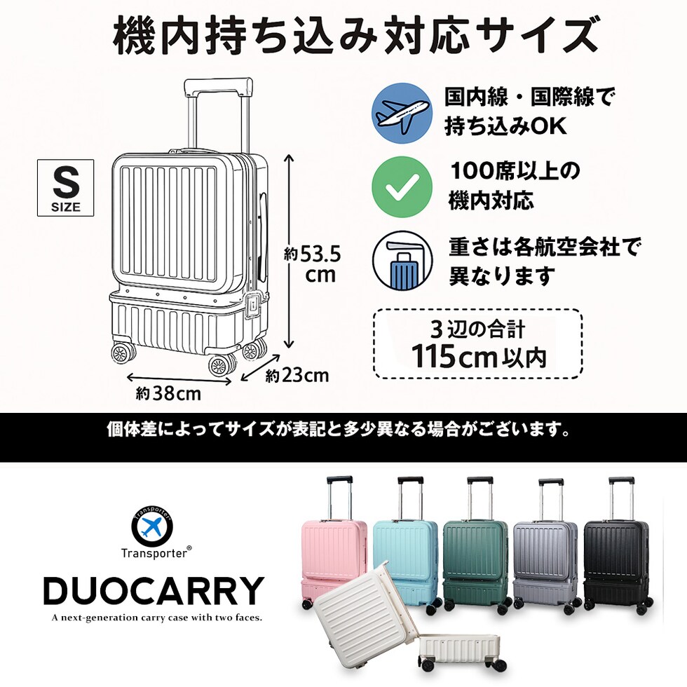 国際線・国内線(100席以上)の機内持ち込みに適合したサイズとなっております。