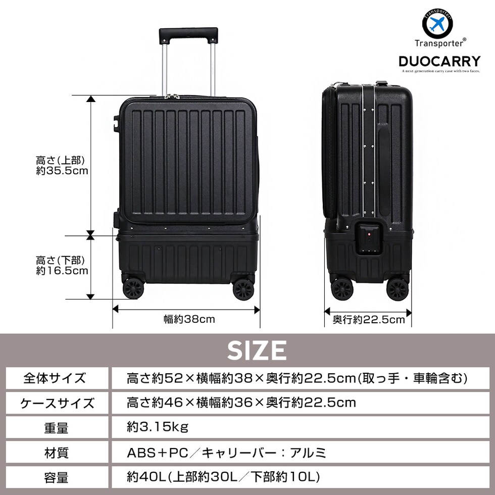 | 全体サイズ | 高さ約52×横幅約38×奥行約22.5cm(取っ手・車輪含む) |