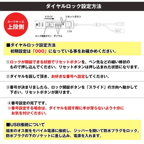 | ■スーツケース【機内持ち込み】について 国際線・国内線(100席以上)の機内に持ち込みに適合したサイズとなっております。 LCC・MCCを除く航空会社で機内持ち込みしていただけます。また路線、飛行機の種類により機内に持ち込む事が出来ない場合がございますので、予めご了承願います。 ■キャリーバーで本体を持ち上げないで下さい。 ■キャリーバーには生産時に使用する潤滑油が付着している場合がございます。その場合は拭いてからご使用ください。 ■不整地ではご利用いただけません。 ■商品サイズ・カラーは、企画サイズとなります。 ■掲載の商品画像につきましては、モニターの種類・設定等により、実際の商品とは素材感や色味が異なる見え方をする場合があります。 ■細かなキズや、製造上避けられないシミ・シワなどがある場合があります。 ■商品仕様は、予告無く仕様変更される場合がございます。 ■アウトレットにて販売しております。アウトレットの訳有り品として ・多少の傷や汚れがある ・チャックが少し固い ・縫製が少し甘い ・縫製のラインが少し歪んでいる ・ミシンで縫いすぎて糸をほぐした跡がある ・梱包には再利用箱を利用している ・タグのついていない商品がある ・多少のにおい等(接着剤やクリーニング液)が残っている ・その他ご使用に問題のない物等など といった上記の状態の商品が含まれている場合がございますが、予めご了承願います。 |