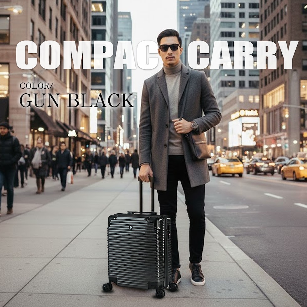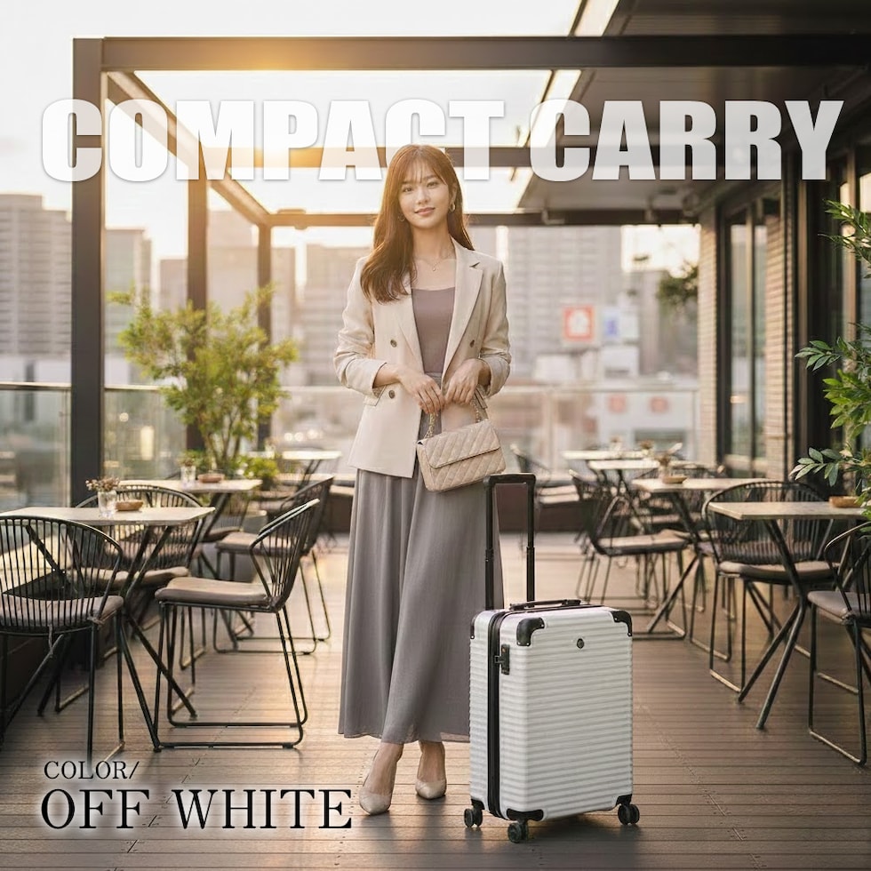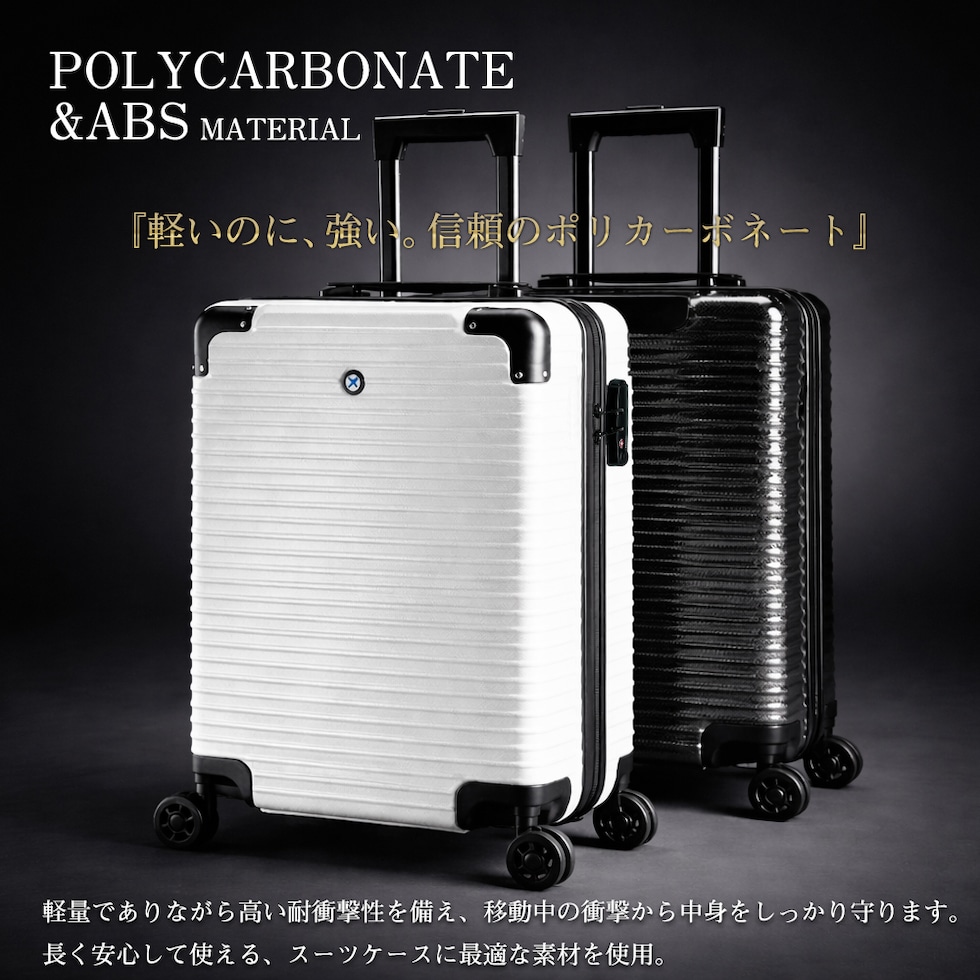 | 光沢のあるガンブラックとオフホワイトの洗練されたカラーリング。ビジネスにもカジュアルにも馴染む、スタイリッシュなスーツケース(キャリーケース)です。 |