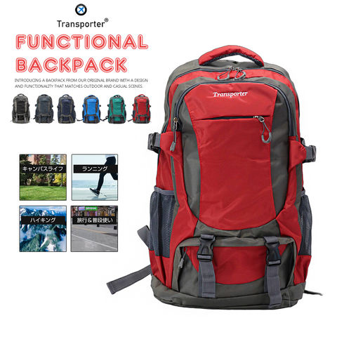 リュックサック 大容量 機能性 バックパック 50L デイバッグ 軽量 カジュアルバッグ メンズ レディース リュック カバン 鞄 バック 旅行グッズ おしゃれ かわいい 実用的 通学 通勤 Transporter 【ja-4】 チェリーレッド トラベルソムリエ t-bp3